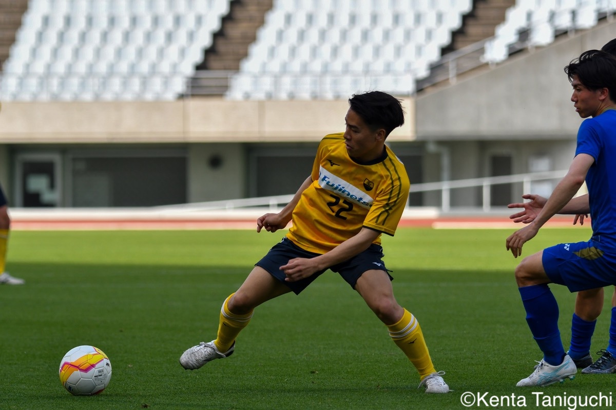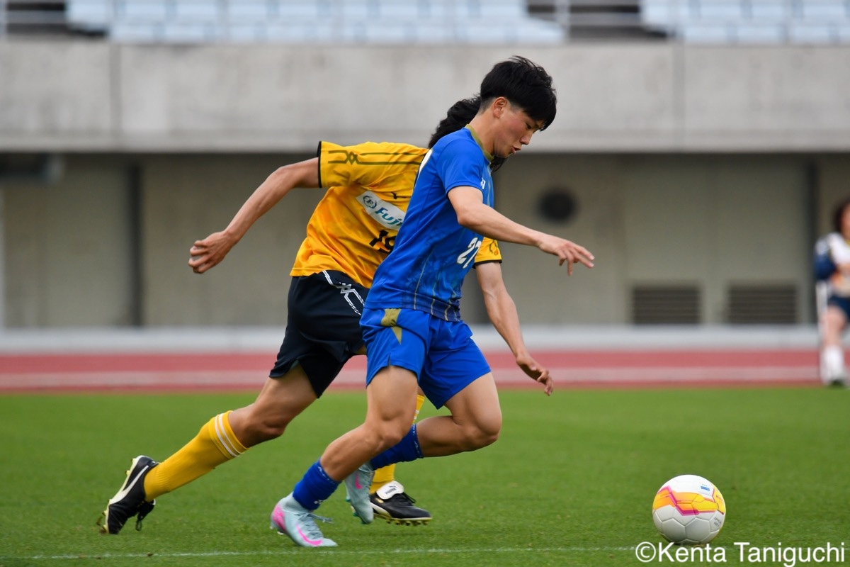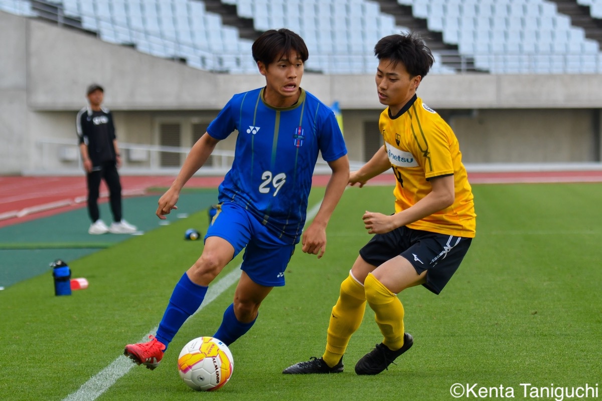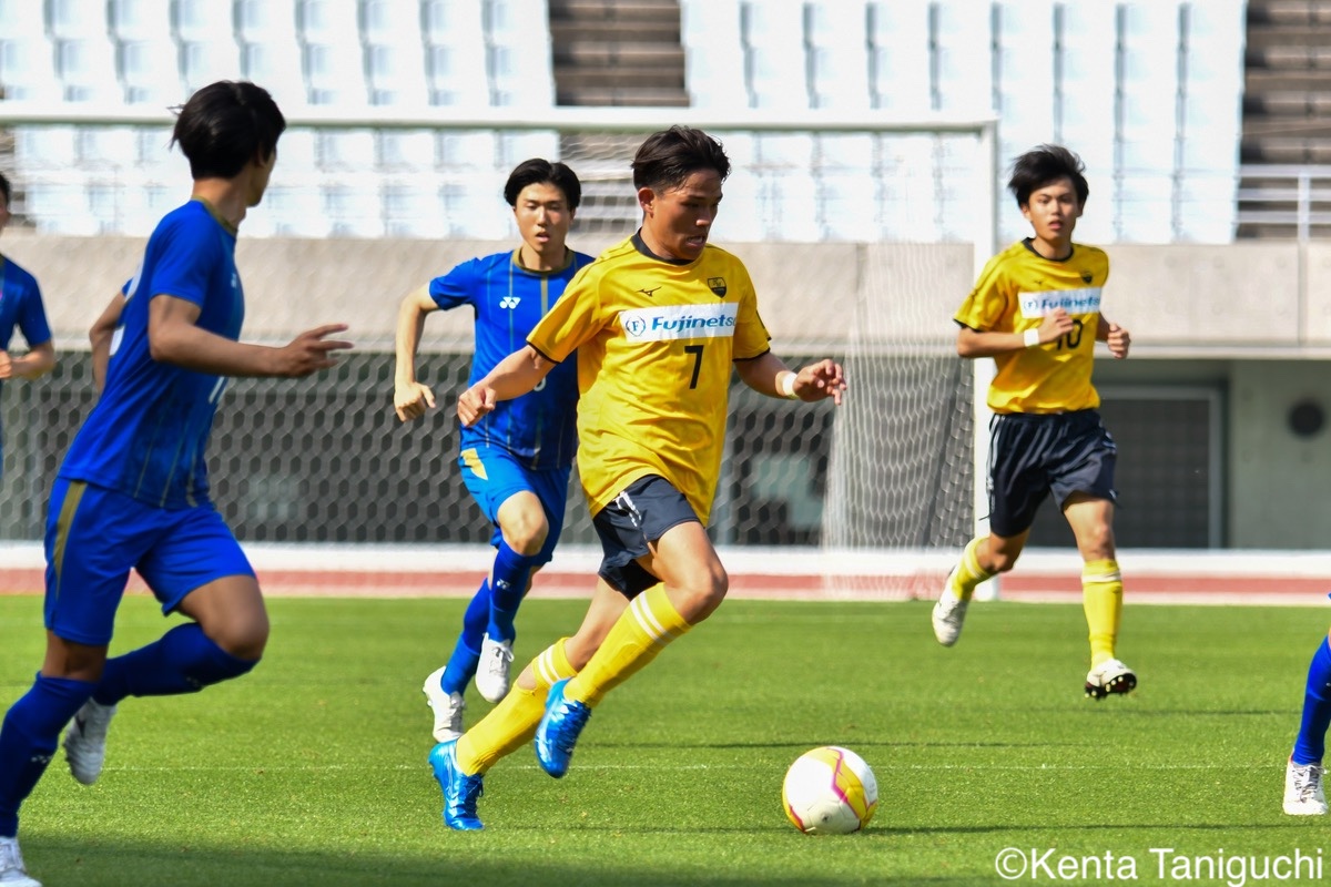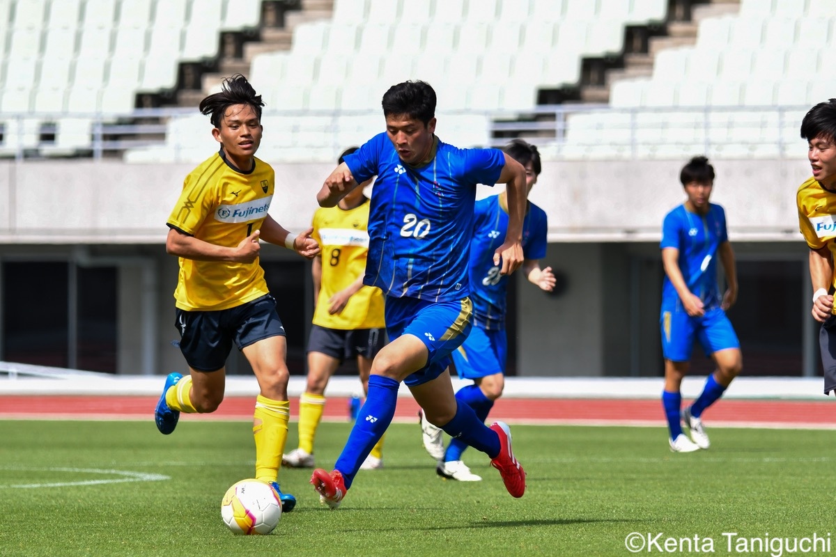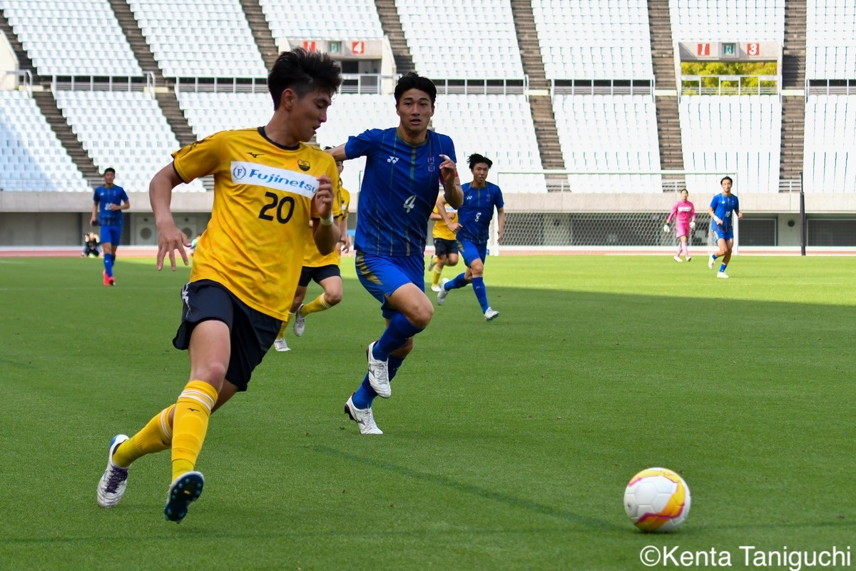 阪南大MF秋末翔也(1年/宮崎日本大学高)はライン際で相手を翻弄する
