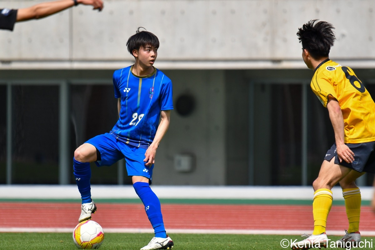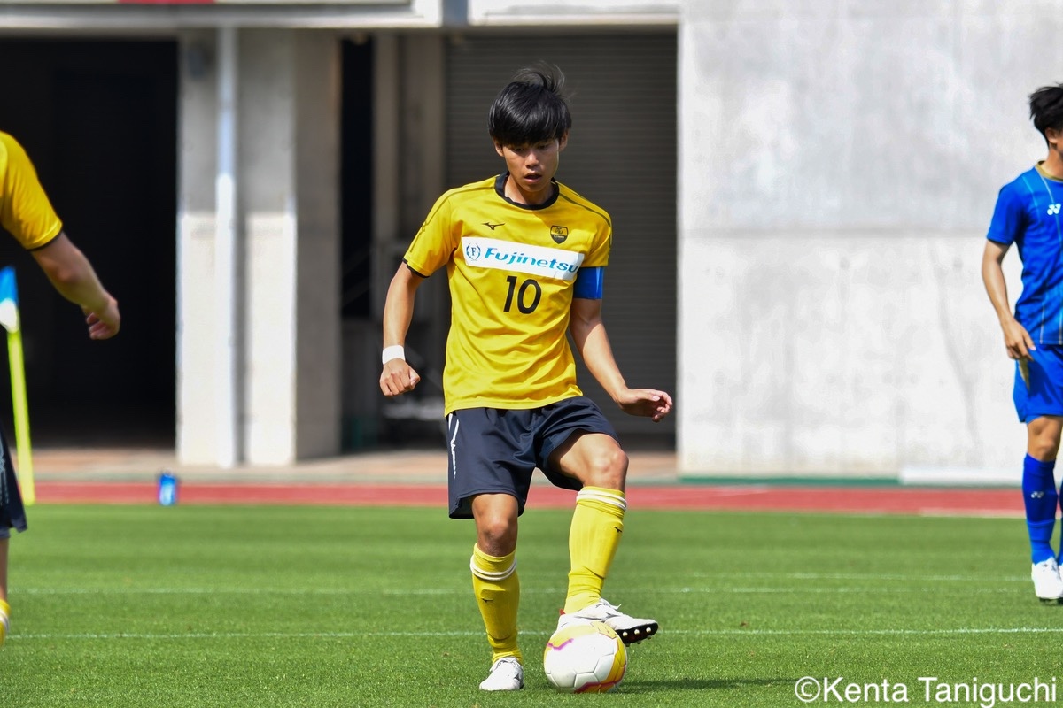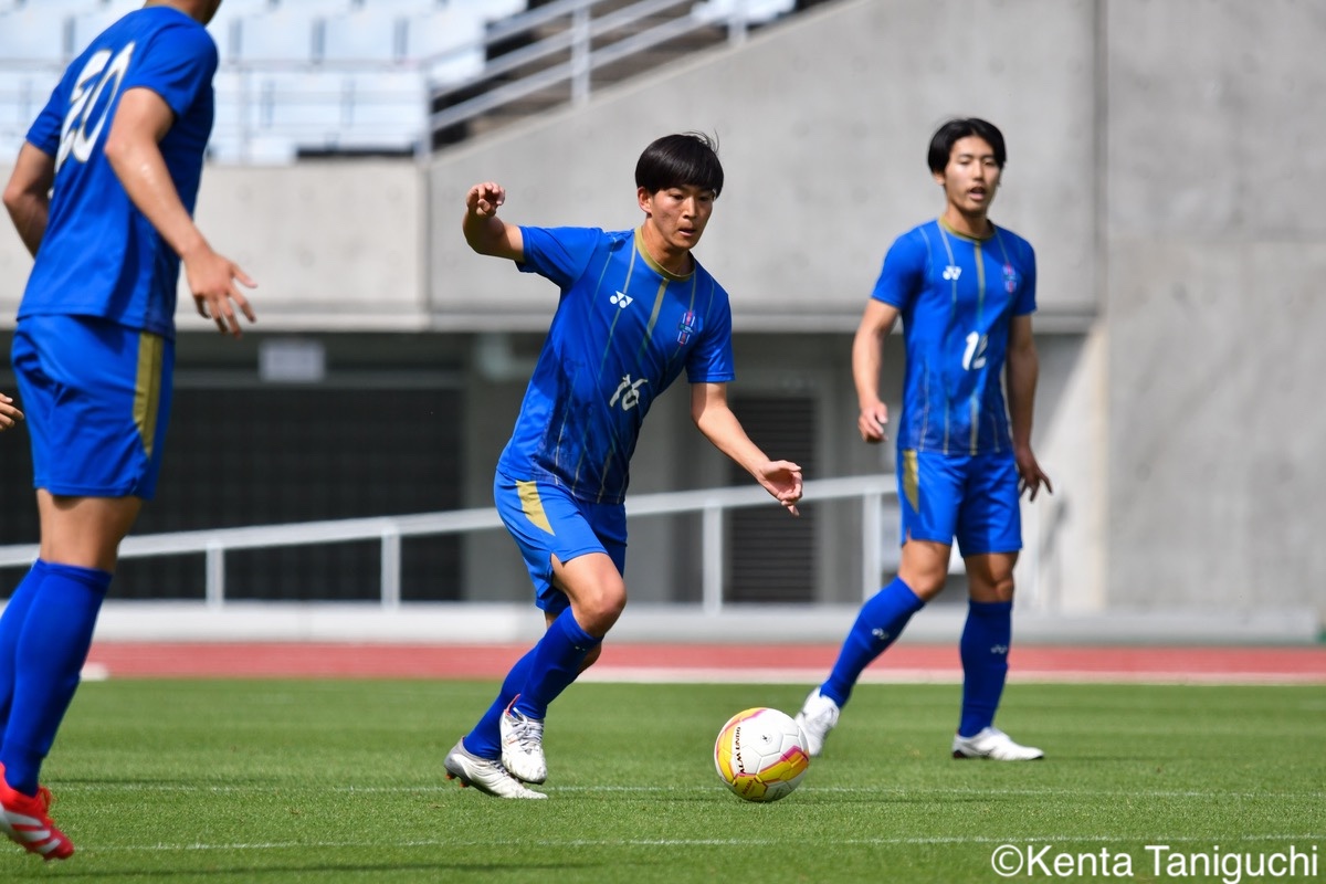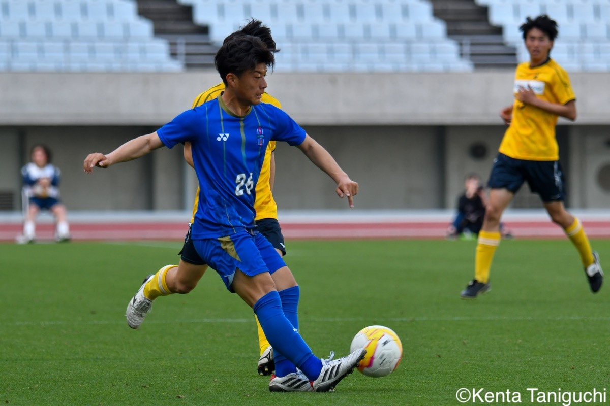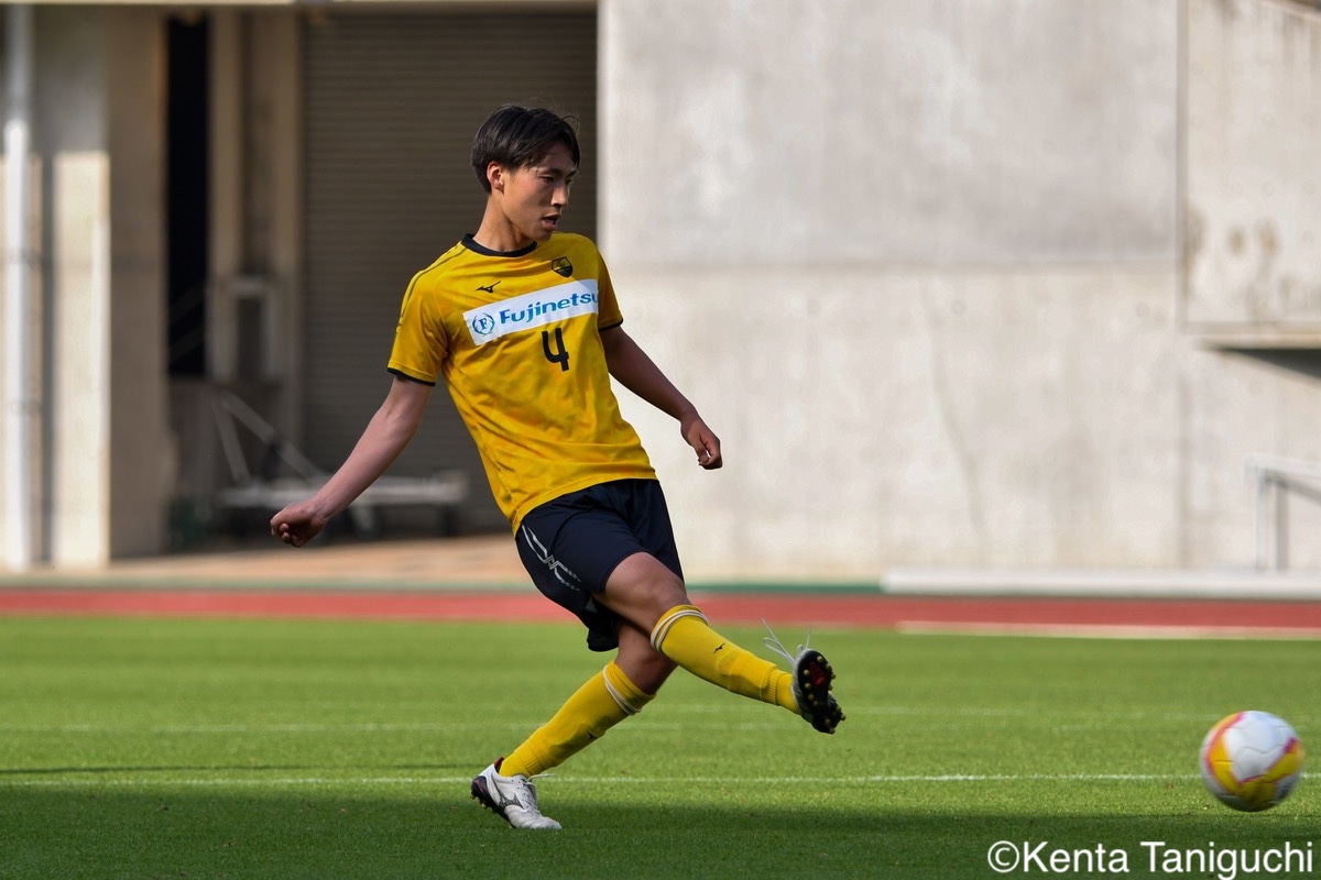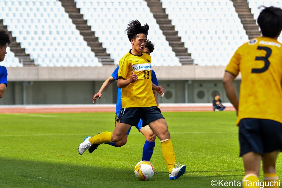 阪南大DF宮崎悠大(2年/阪南大学高)はダイレクトでボールをさばく