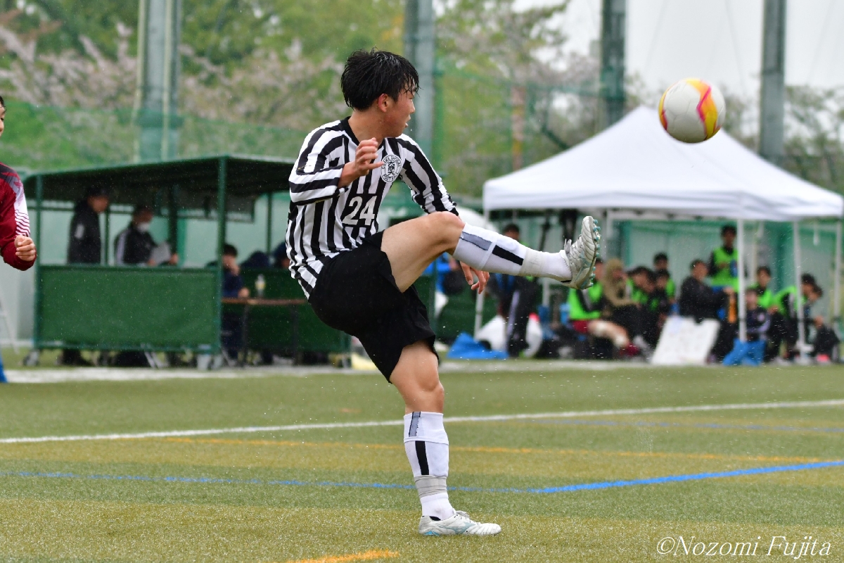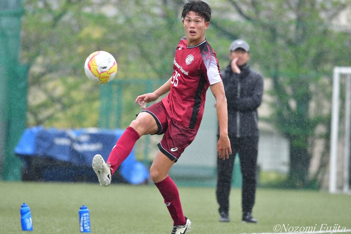 大商大MF江村空昇(4年/野洲高)が胸トラップでボールを収める