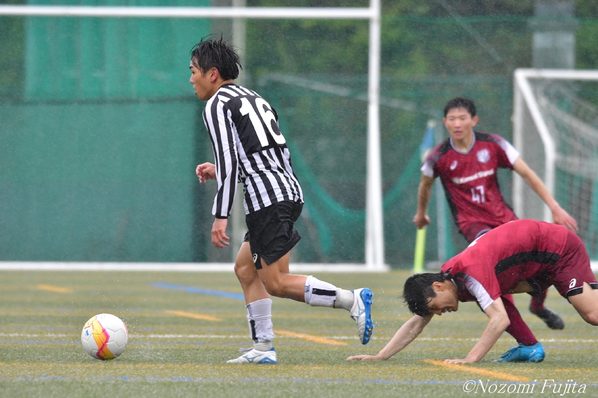 ドリブルを駆使し、ボールを前進させた立命大MF石澤直弥(3年/立命館守山高)