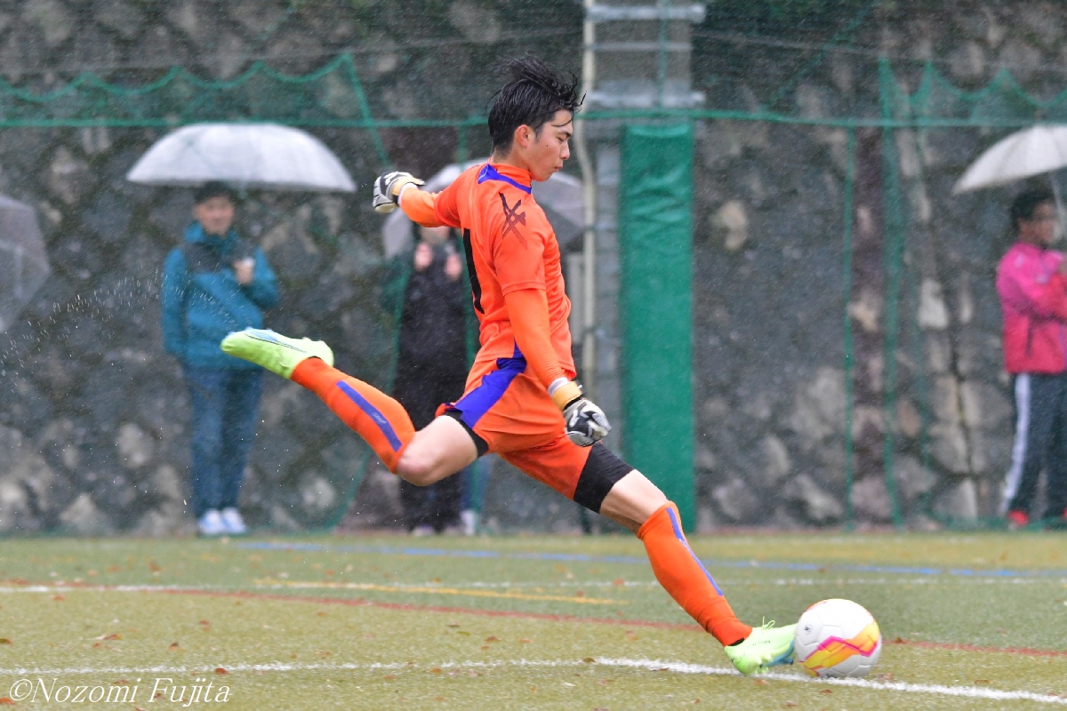 雨で判断が難しい中、正確にボールを処理した立命大GK永田健人(4年/創成館高)