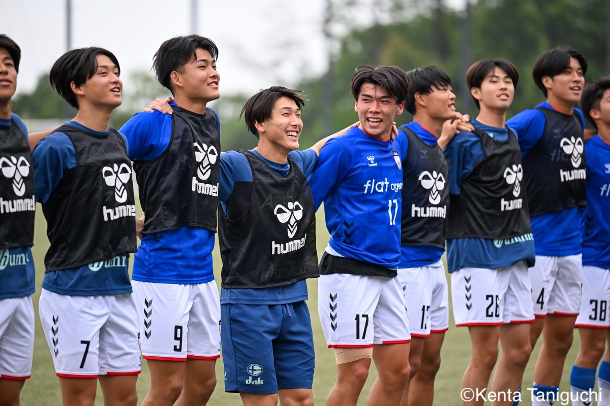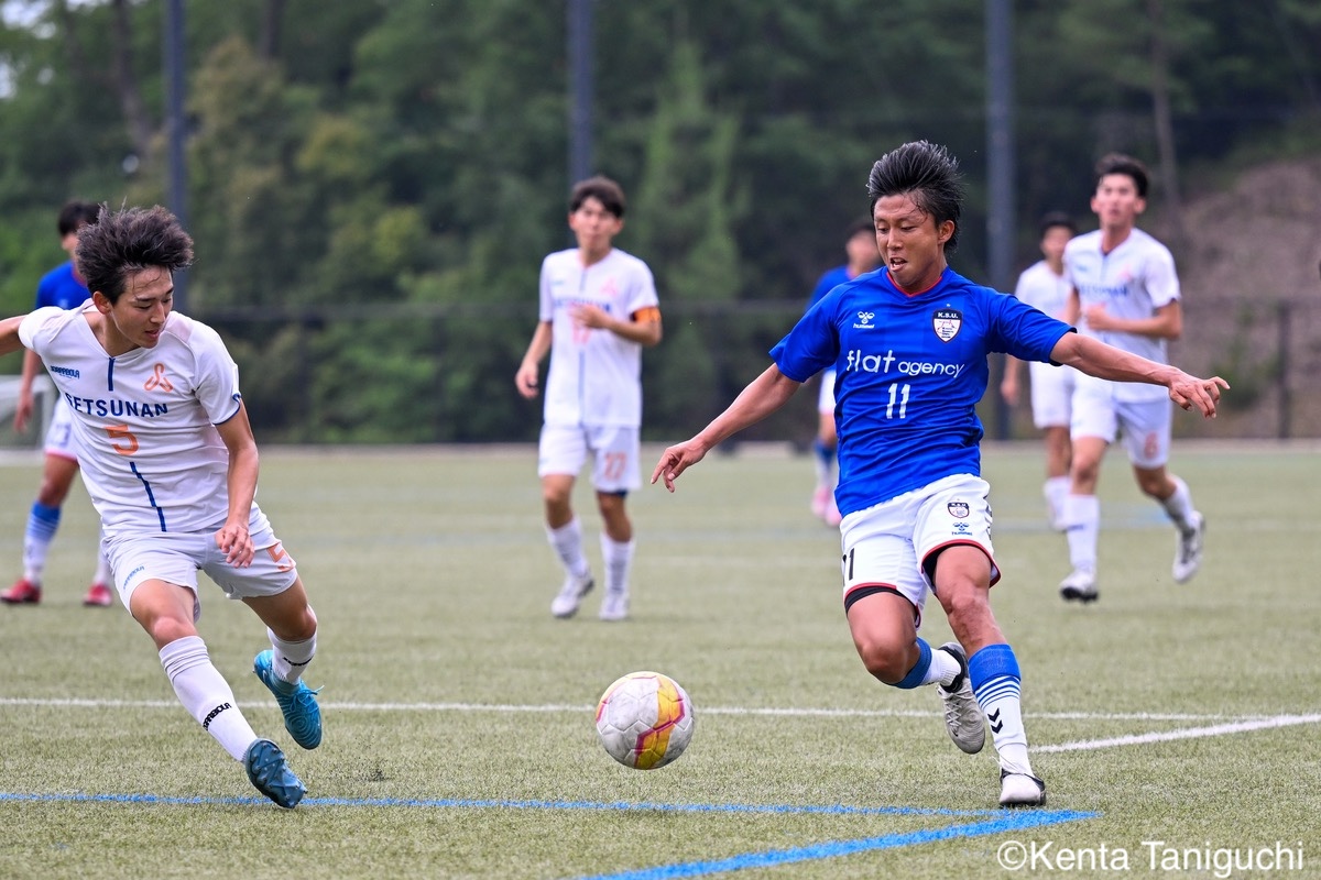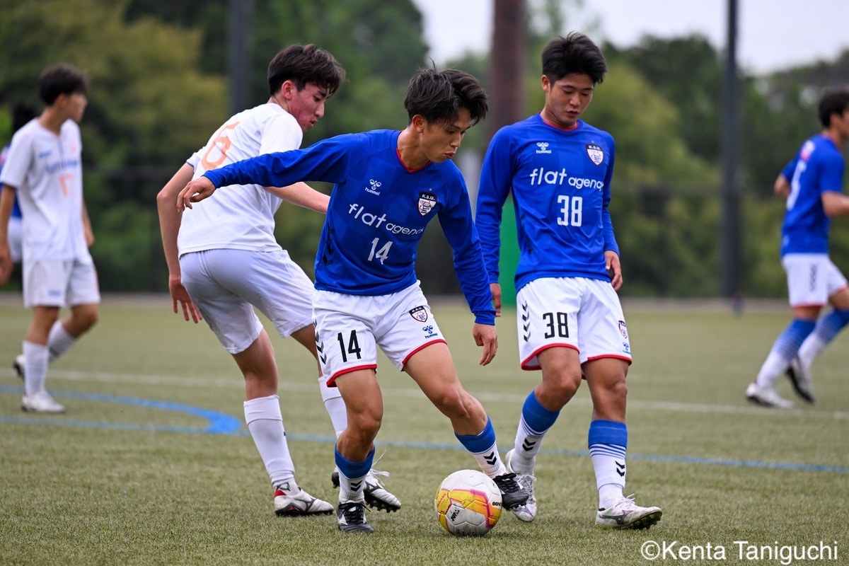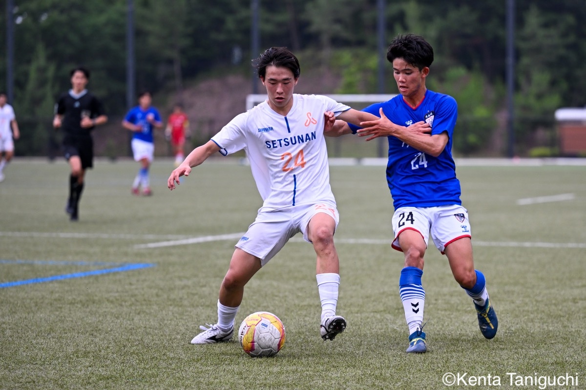 京都産業大スターティングメンバー攻撃の流れを生み出す京産大MF大倉慎平(1年/ガンバ大阪ユース)京産大DF吉井泰生(1年/ガイナーレ鳥取U-18)はフェイントで相手を揺さぶるクリーンシートを達成した京産大GK徳若碧都(4年/高川学園高)摂南大MF次郎内孝行(3年/興國高)はこぼれ球にすぐさま反応前線にボールを送る摂南大MF喜々津夢斗(1年/広島国際学院高)京産大DF田代紘(3年/ヴィッセル神戸U-18)はサイドにボールを送るパスの出しどころを探る摂南大MF吉村優太(3年/常翔学園高)京産大DF逵村健斗(4年/三重高)はDF陣を統率したチャンスを逃さずに攻撃を仕掛ける摂南大DF有田晴哉(2年/東海大学付属大阪仰星高)京産大DF西川宙希(1年/セレッソ大阪U-18)は威力のあるシュートを放った相手に囲まれながらも冷静さを維持する摂南大DF伊波海斗(1年/アサンプション国際高)京産大FW高川諒希(1年/カターレ富山U-18)は2得点を挙げる活躍を見せた2人がかりのプレスにも動じない京産大MF伊藤翼(3年/セレッソ大阪U-18)京産大DF夘田大揮(4年/東山高)は冷静にパスを繋ぐロングフィードでチャンスを作った摂南大GK奥田楓矢(2年/大冠高)京産大MF皿良立輝(2年/セレッソ大阪U-18)はサイドから果敢に攻撃を仕掛けるキープ力が光り幾度もチャンスを生み出した京産大MF長谷川裟恭(4年/京都橘高)京産大MF福永裕也(2年/京都橘高)が6点目を決めた得点を決めて喜びを表す京産大FW小濵弘貴(4年/東海大学付属福岡高)京産大FW小濵の積極的な攻撃が相手を苦しめる8点目を頭で押し込んだ京産大MF福島健太(2年/青森山田高)摂南大DF吉岡翼(1年/高川学園高)は体を使ってボールを奪取する交代後すぐに得点を奪った京産大MF末谷誓梧(3年/セレッソ大阪U-18)8-0の快勝に笑顔を見せる京産大メンバー