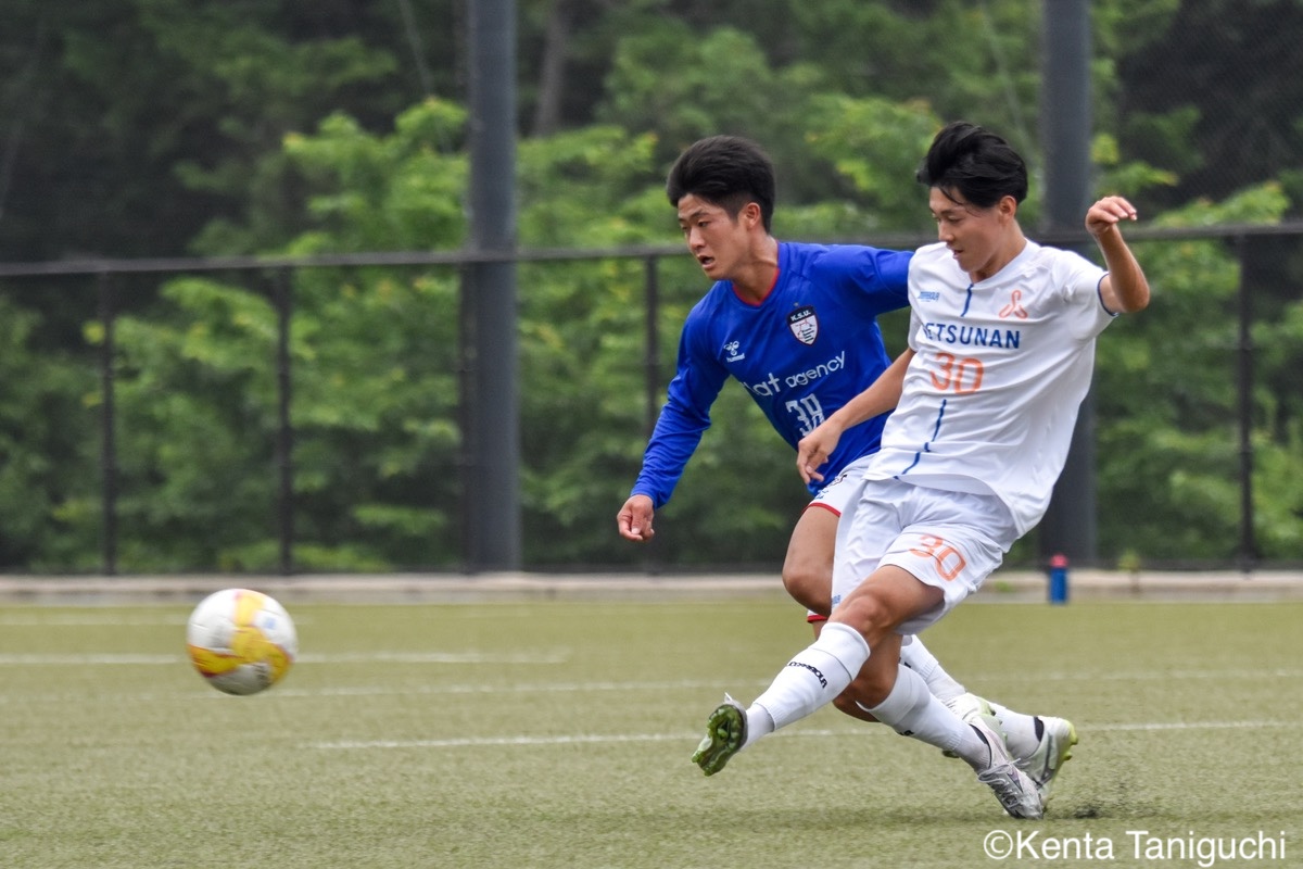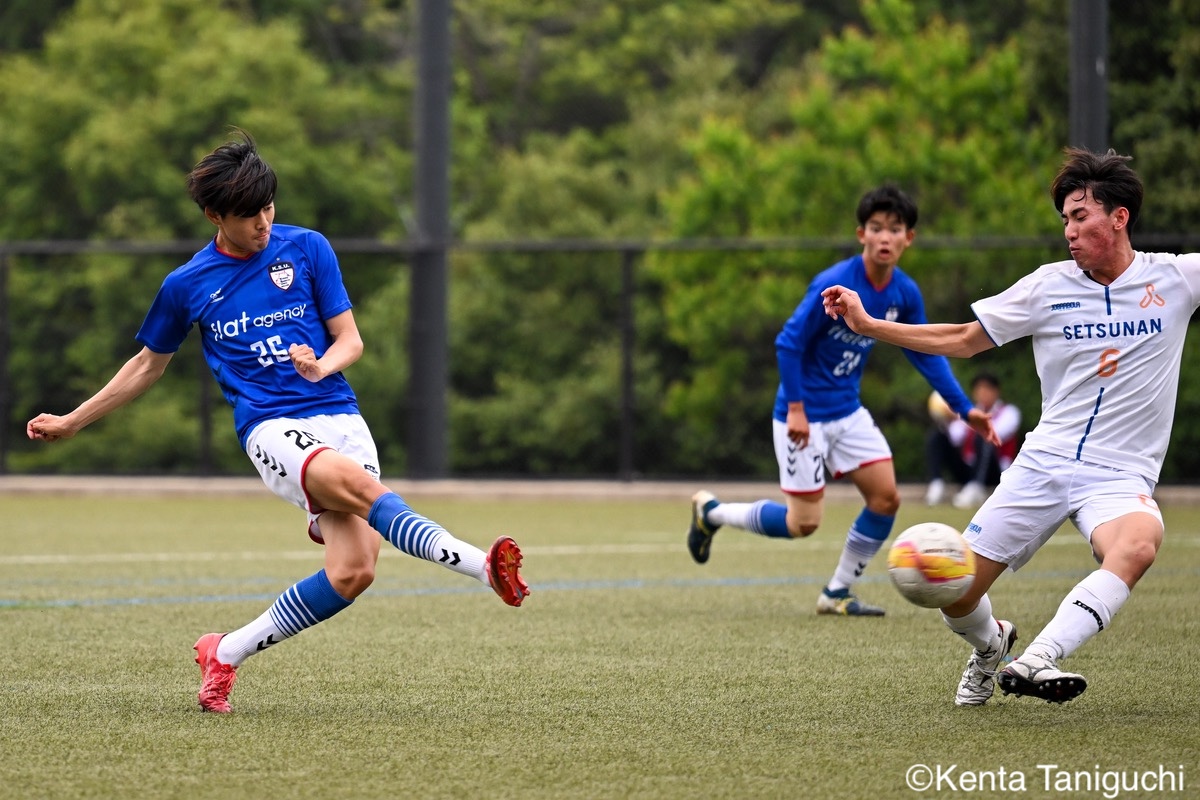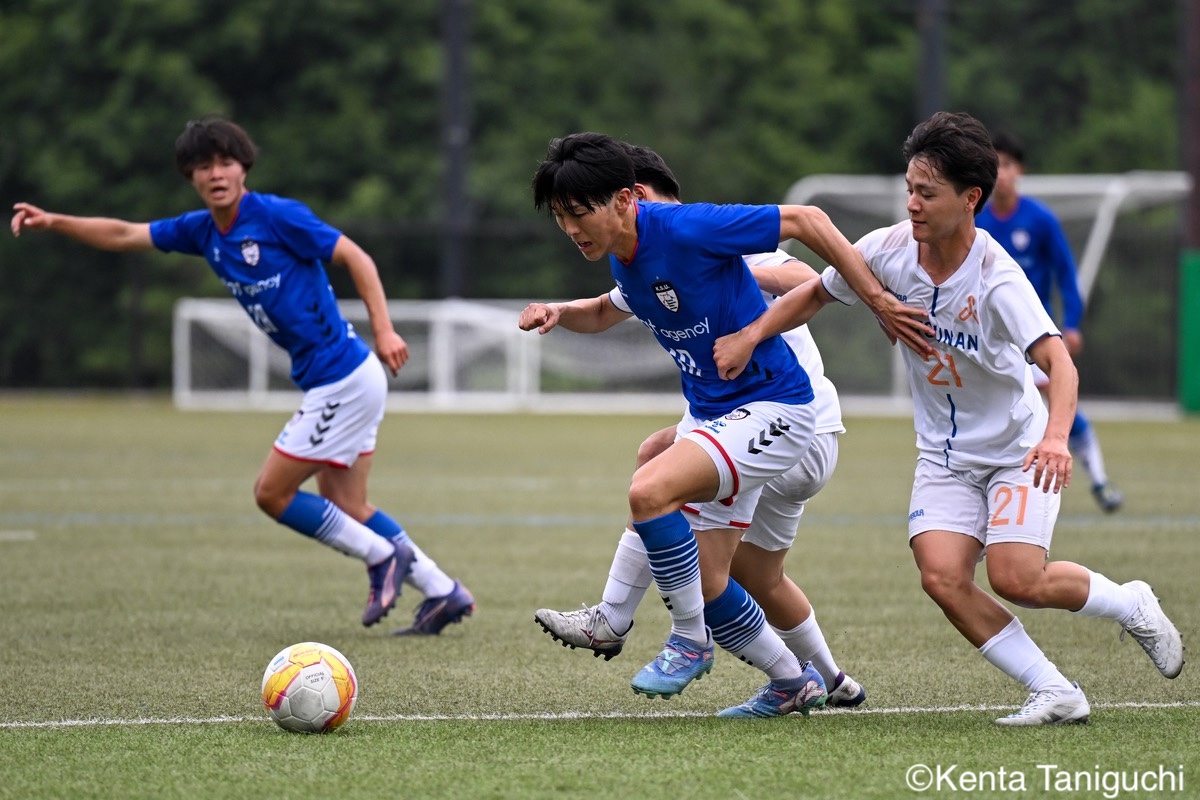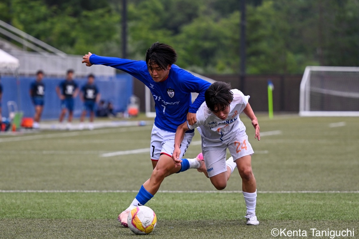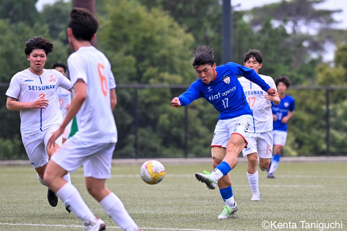 京都産業大スターティングメンバー攻撃の流れを生み出す京産大MF大倉慎平(1年/ガンバ大阪ユース)京産大DF吉井泰生(1年/ガイナーレ鳥取U-18)はフェイントで相手を揺さぶるクリーンシートを達成した京産大GK徳若碧都(4年/高川学園高)摂南大MF次郎内孝行(3年/興國高)はこぼれ球にすぐさま反応前線にボールを送る摂南大MF喜々津夢斗(1年/広島国際学院高)京産大DF田代紘(3年/ヴィッセル神戸U-18)はサイドにボールを送るパスの出しどころを探る摂南大MF吉村優太(3年/常翔学園高)京産大DF逵村健斗(4年/三重高)はDF陣を統率したチャンスを逃さずに攻撃を仕掛ける摂南大DF有田晴哉(2年/東海大学付属大阪仰星高)京産大DF西川宙希(1年/セレッソ大阪U-18)は威力のあるシュートを放った相手に囲まれながらも冷静さを維持する摂南大DF伊波海斗(1年/アサンプション国際高)京産大FW高川諒希(1年/カターレ富山U-18)は2得点を挙げる活躍を見せた2人がかりのプレスにも動じない京産大MF伊藤翼(3年/セレッソ大阪U-18)京産大DF夘田大揮(4年/東山高)は冷静にパスを繋ぐロングフィードでチャンスを作った摂南大GK奥田楓矢(2年/大冠高)京産大MF皿良立輝(2年/セレッソ大阪U-18)はサイドから果敢に攻撃を仕掛けるキープ力が光り幾度もチャンスを生み出した京産大MF長谷川裟恭(4年/京都橘高)京産大MF福永裕也(2年/京都橘高)が6点目を決めた得点を決めて喜びを表す京産大FW小濵弘貴(4年/東海大学付属福岡高)京産大FW小濵の積極的な攻撃が相手を苦しめる8点目を頭で押し込んだ京産大MF福島健太(2年/青森山田高)摂南大DF吉岡翼(1年/高川学園高)は体を使ってボールを奪取する交代後すぐに得点を奪った京産大MF末谷誓梧(3年/セレッソ大阪U-18)8-0の快勝に笑顔を見せる京産大メンバー