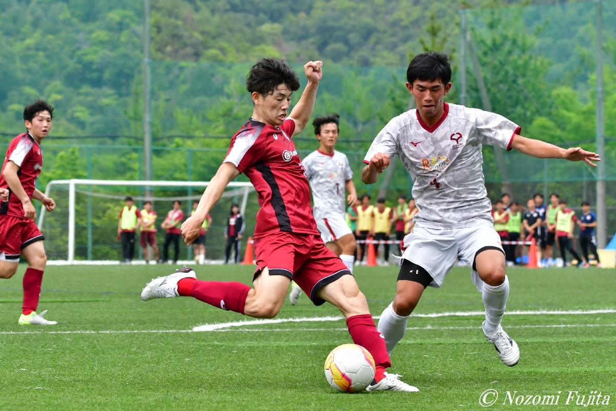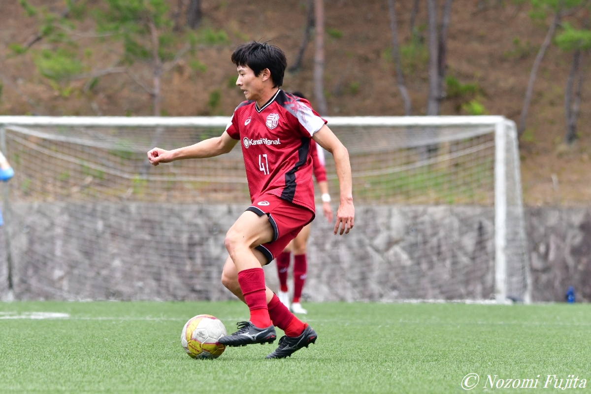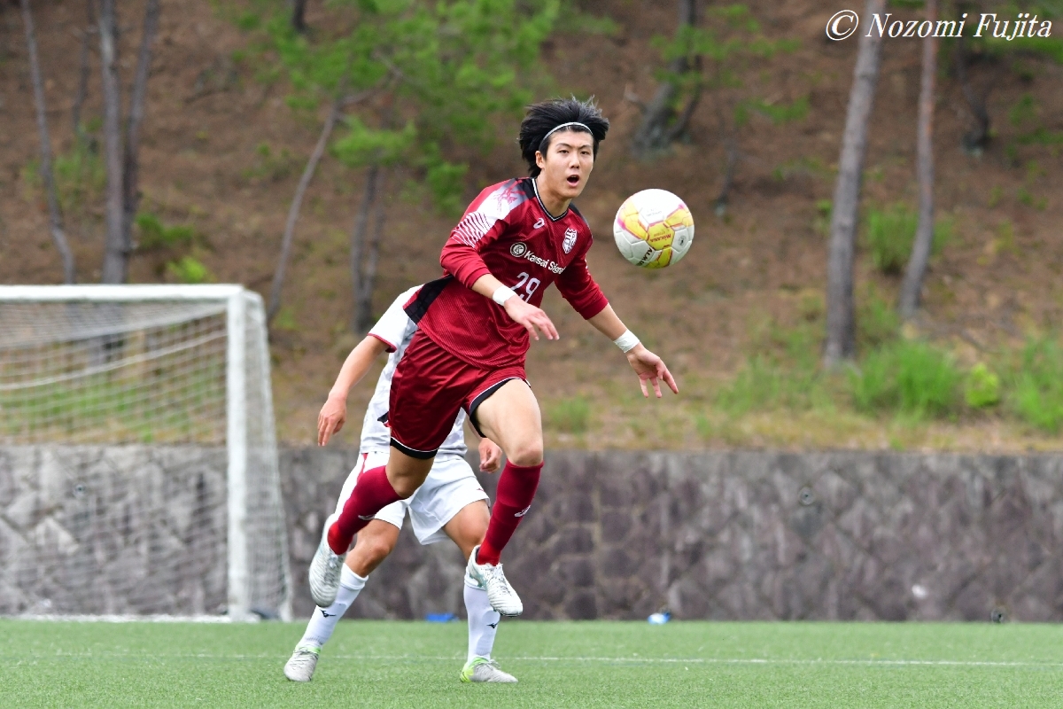 MF藤井蒼斗(2年/高川学園高)はボールの流れの良化に努め、攻撃面では縦方向への選択肢を常に持ってプレー