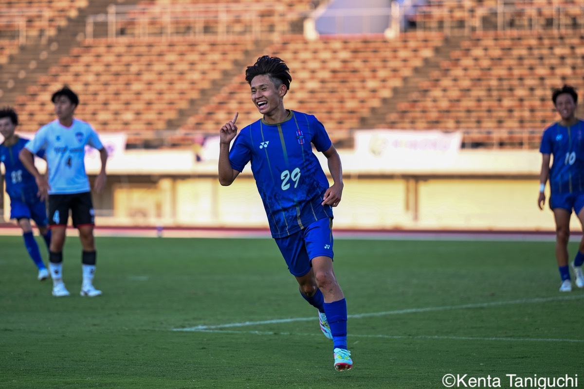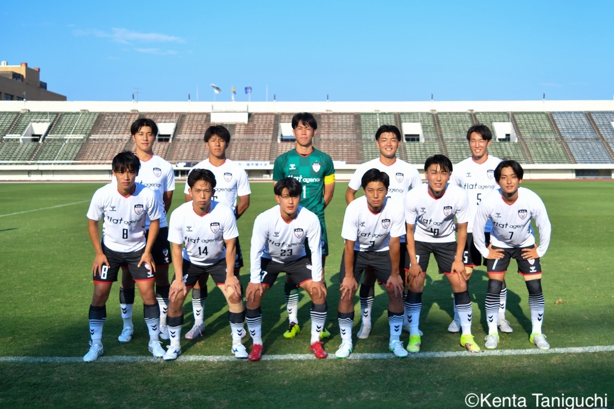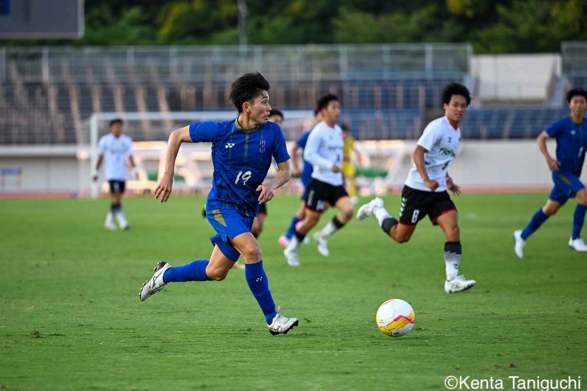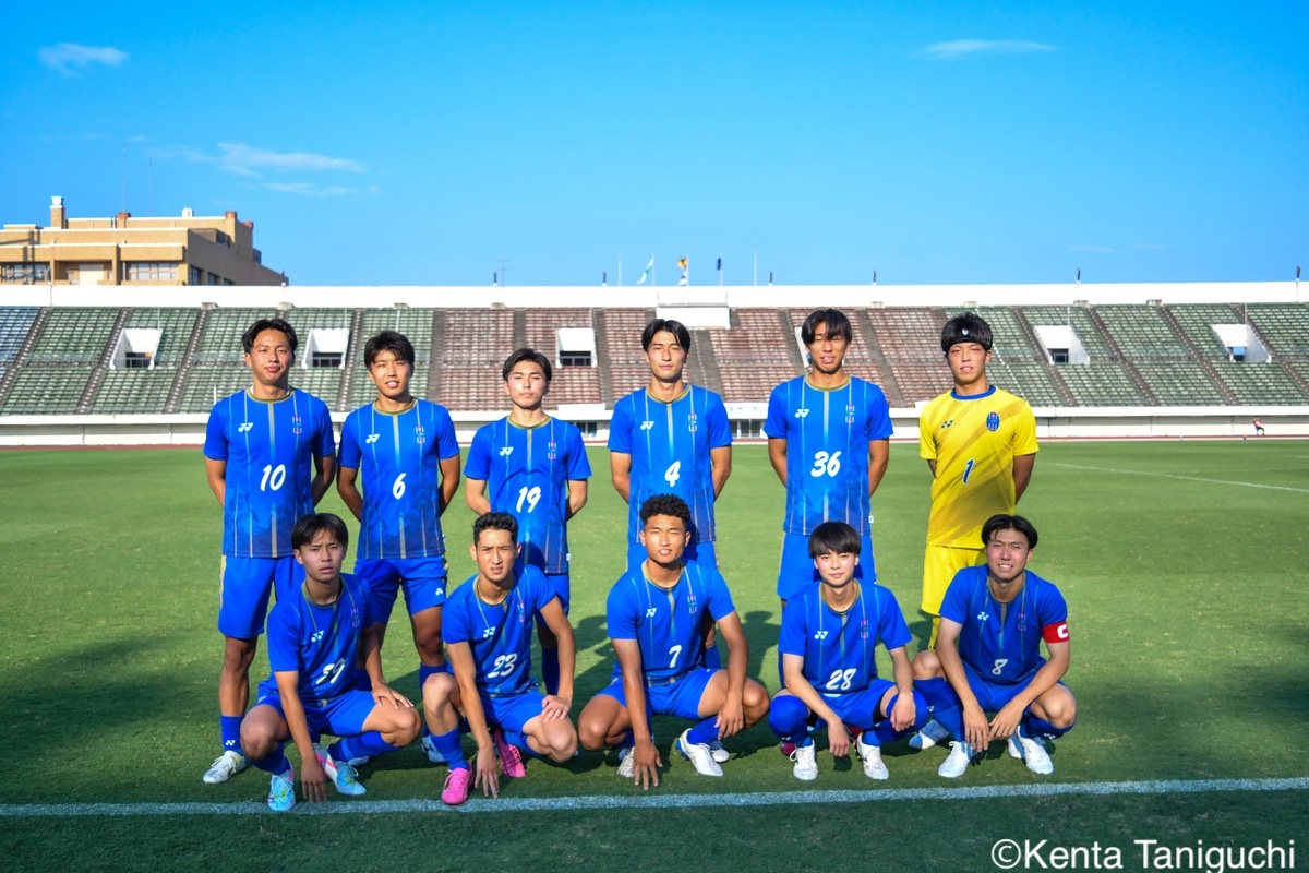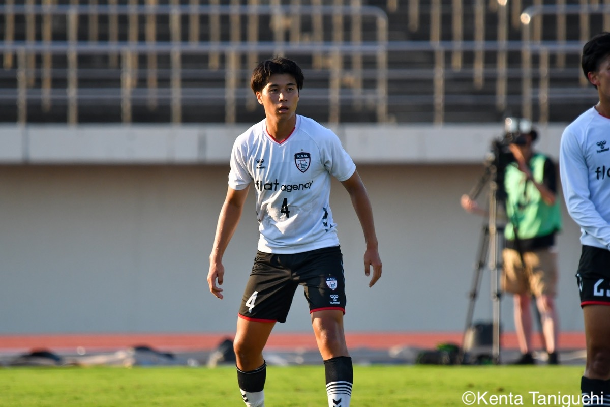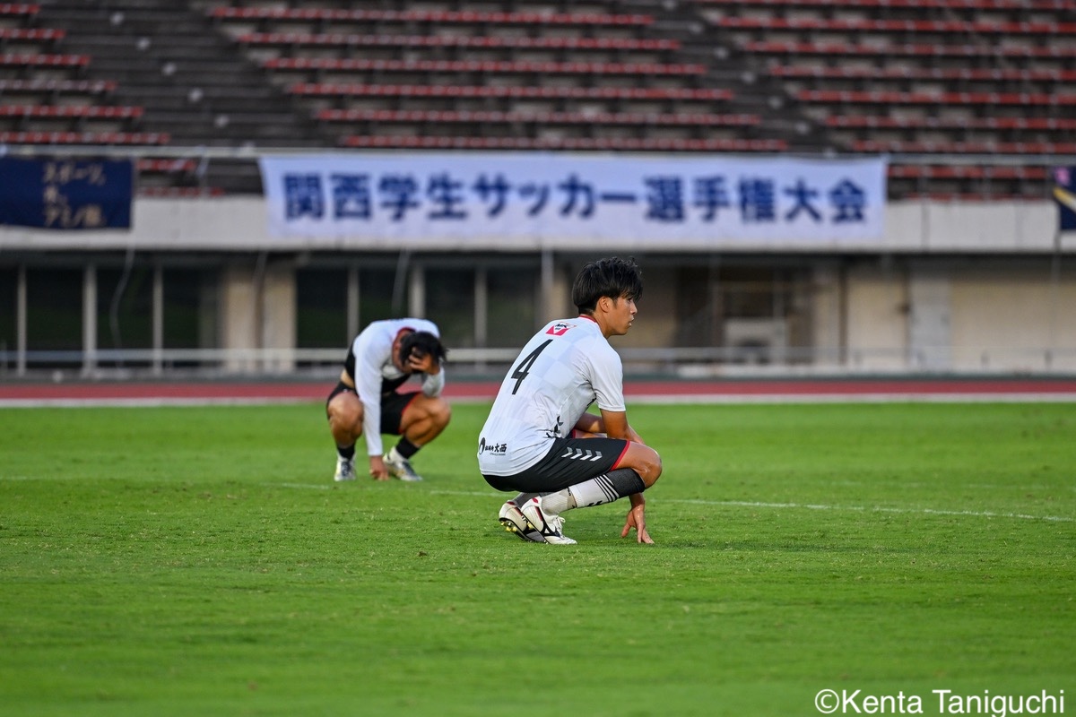 京都産業大スターティングメンバー京産大GK徳若碧都(4年/高川学園高)のセービングがチームを幾度も救ったパスを繋ぎ攻撃の糸口を探る京産大DF逵村健斗(4年/三重高)京産大FW妹尾颯斗(3年/サンフレッチェ広島F.Cユース)はハイプレスで攻撃のチャンスを作った相手を翻弄するドリブルをみせる京産大MF長谷川裟恭(4年/京都橘高)京産大DF田代紘(3年/ヴィッセル神戸U-18)は積極的に攻撃を仕掛ける守備の要としてチームに貢献した京産大DF小野成夢(3年/愛媛FCU-18)京産大MF末谷誓梧(3年/セレッソ大阪U-18)は先制ゴールを決めたボールを捌いてゲームを組み立てる京産大MF伊藤翼(3年/セレッソ大阪U-18)京産大MF滝口晴斗(3年/サンフレッチェ広島ユース)はサイドから仕掛けてゴールに迫る精度の高いキックでボールを供給する京産大MF皿良立輝(2年/セレッソ大阪U-18)京産大は2年連続の準優勝となった阪南大スターティングメンバーキャプテンとしてチームを牽引した阪南大MF工藤紫苑(4年/ベガルタ仙台ユース)阪南大DF髙下麻実(2年/近畿大学附属高)は攻守に奔走したワンタッチで捌きボールを繋げる阪南大MF篠田純之助(4年/東福岡高)阪南大DF川端元(3年/履正社高)はボールを戻して攻撃をを組み立て直す最少失点に抑える活躍をみせた阪南大GK高畑優太(4年/アルビレックス新潟U-18)阪南大MF松井匠(4年/高知高/大宮内定)はサイドからフィジカルを活かした攻撃を仕掛ける得意のドリブルでボールを運ぶ阪南大FW坪井風汰(3年/東邦高)阪南大MF松井空音(1年/帝京大学可児高)のパス供給から攻撃が生まれた堅守を崩さない阪南大DF金子光汰(4年/船橋市立船橋高)阪南大MF秋末翔也(1年/宮崎日本大学高)が決勝ゴールを決めた得点を喜び合うスピードを上げてボールを運ぶ阪南大DF村田一翔(3年/国見高)FKのチャンスを活かす阪南大MF松本楓悟(4年/阪南大学高)最後の最後まで気持ちがブレない阪南大FW角田颯磨(3年/高知高)優勝した阪南大学はスタンドの仲間と勝ちロコ