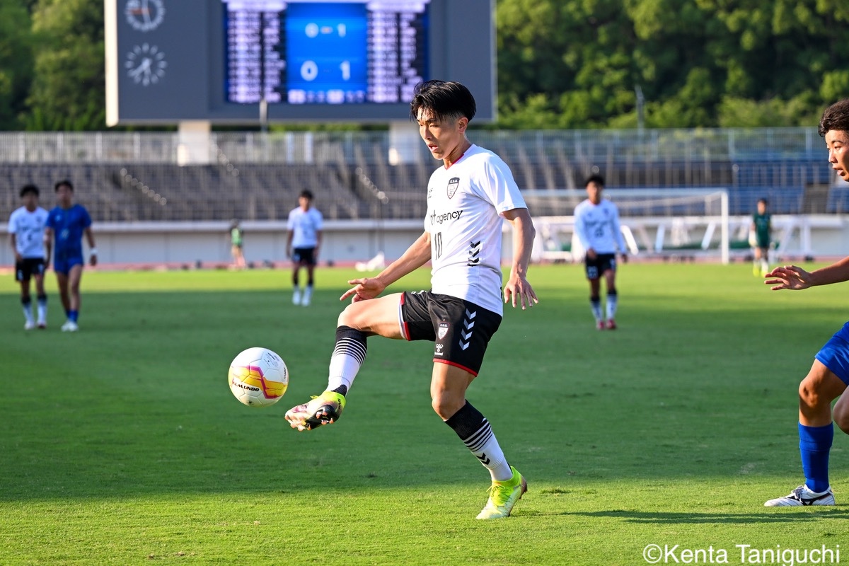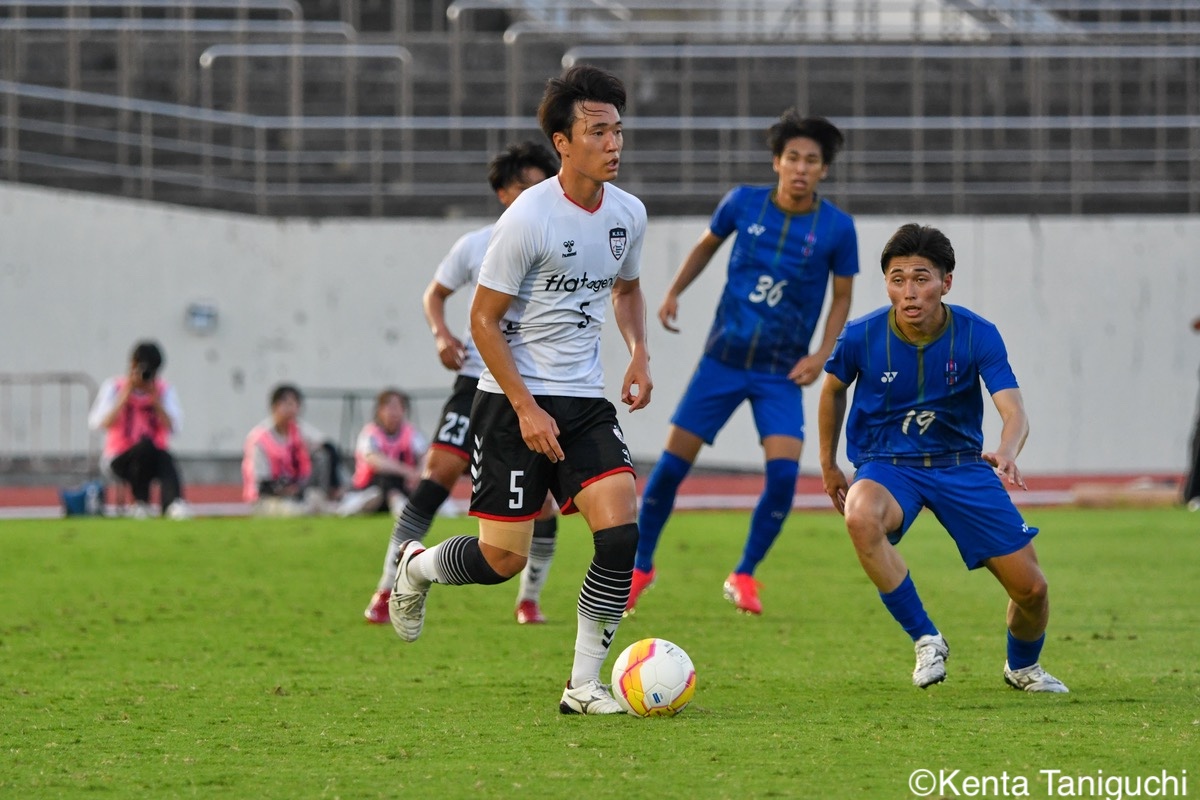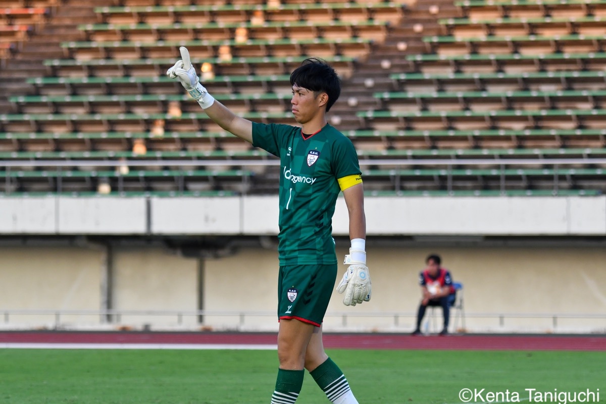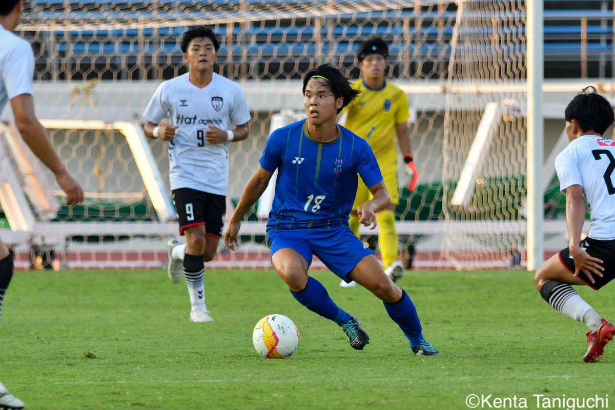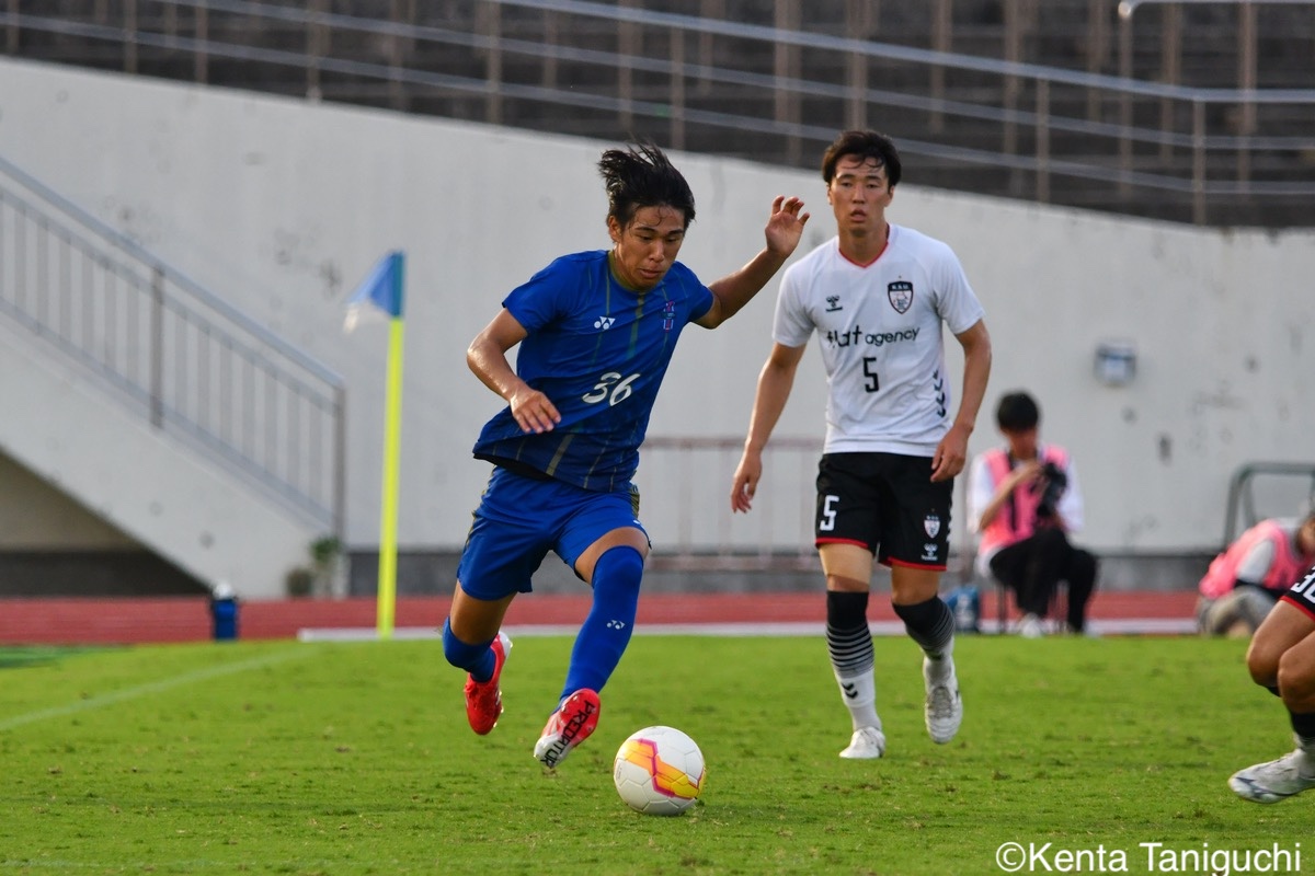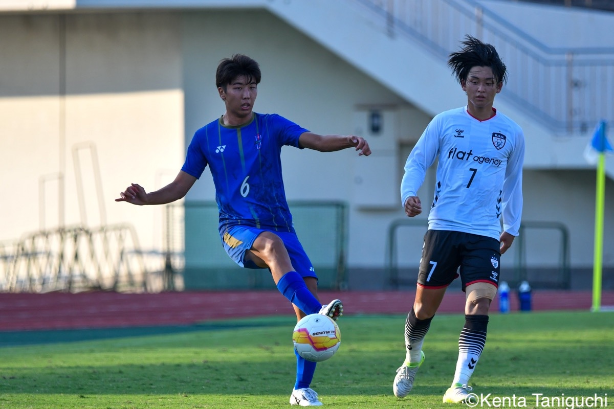 京都産業大スターティングメンバー京産大GK徳若碧都(4年/高川学園高)のセービングがチームを幾度も救ったパスを繋ぎ攻撃の糸口を探る京産大DF逵村健斗(4年/三重高)京産大FW妹尾颯斗(3年/サンフレッチェ広島F.Cユース)はハイプレスで攻撃のチャンスを作った相手を翻弄するドリブルをみせる京産大MF長谷川裟恭(4年/京都橘高)京産大DF田代紘(3年/ヴィッセル神戸U-18)は積極的に攻撃を仕掛ける守備の要としてチームに貢献した京産大DF小野成夢(3年/愛媛FCU-18)京産大MF末谷誓梧(3年/セレッソ大阪U-18)は先制ゴールを決めたボールを捌いてゲームを組み立てる京産大MF伊藤翼(3年/セレッソ大阪U-18)京産大MF滝口晴斗(3年/サンフレッチェ広島ユース)はサイドから仕掛けてゴールに迫る精度の高いキックでボールを供給する京産大MF皿良立輝(2年/セレッソ大阪U-18)京産大は2年連続の準優勝となった阪南大スターティングメンバーキャプテンとしてチームを牽引した阪南大MF工藤紫苑(4年/ベガルタ仙台ユース)阪南大DF髙下麻実(2年/近畿大学附属高)は攻守に奔走したワンタッチで捌きボールを繋げる阪南大MF篠田純之助(4年/東福岡高)阪南大DF川端元(3年/履正社高)はボールを戻して攻撃をを組み立て直す最少失点に抑える活躍をみせた阪南大GK高畑優太(4年/アルビレックス新潟U-18)阪南大MF松井匠(4年/高知高/大宮内定)はサイドからフィジカルを活かした攻撃を仕掛ける得意のドリブルでボールを運ぶ阪南大FW坪井風汰(3年/東邦高)阪南大MF松井空音(1年/帝京大学可児高)のパス供給から攻撃が生まれた堅守を崩さない阪南大DF金子光汰(4年/船橋市立船橋高)阪南大MF秋末翔也(1年/宮崎日本大学高)が決勝ゴールを決めた得点を喜び合うスピードを上げてボールを運ぶ阪南大DF村田一翔(3年/国見高)FKのチャンスを活かす阪南大MF松本楓悟(4年/阪南大学高)最後の最後まで気持ちがブレない阪南大FW角田颯磨(3年/高知高)優勝した阪南大学はスタンドの仲間と勝ちロコ