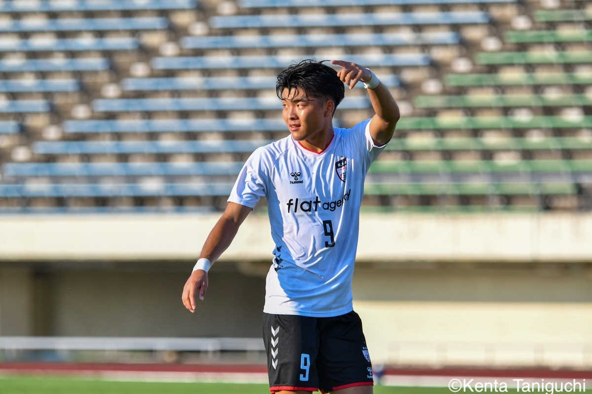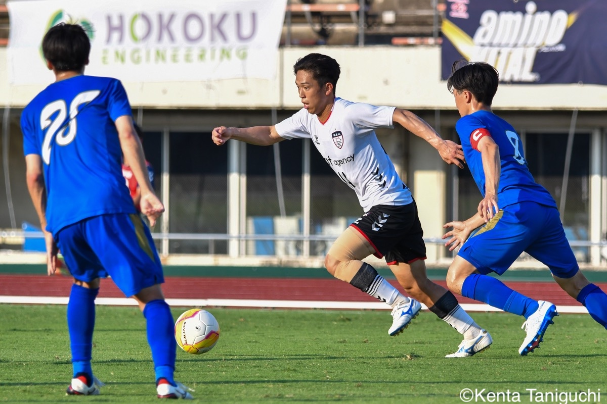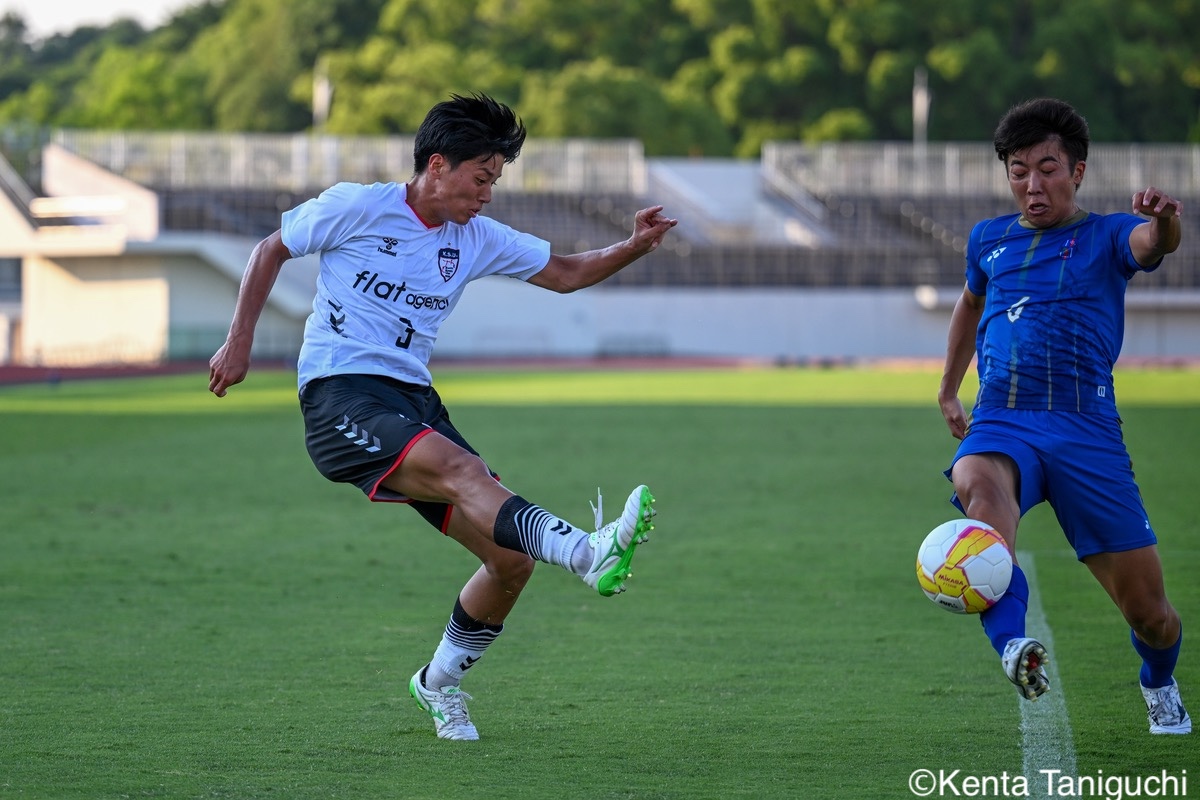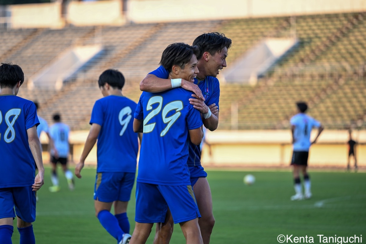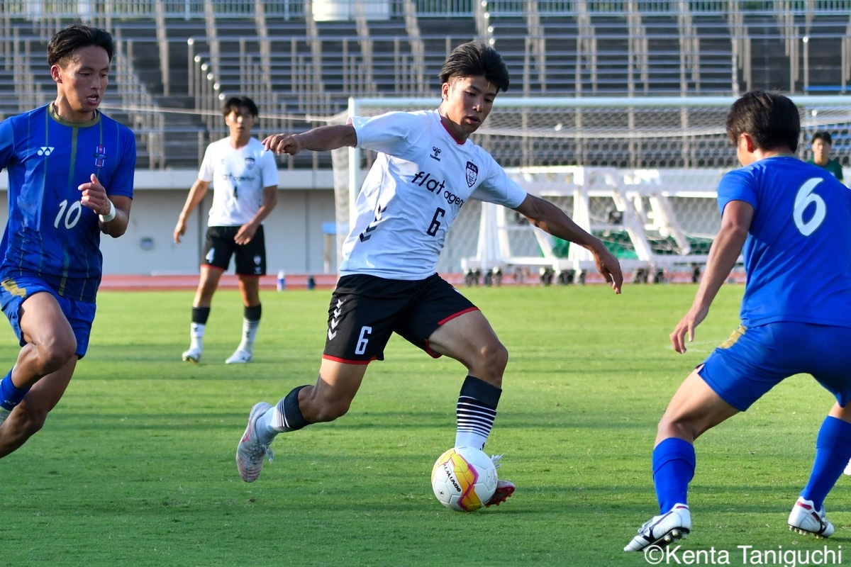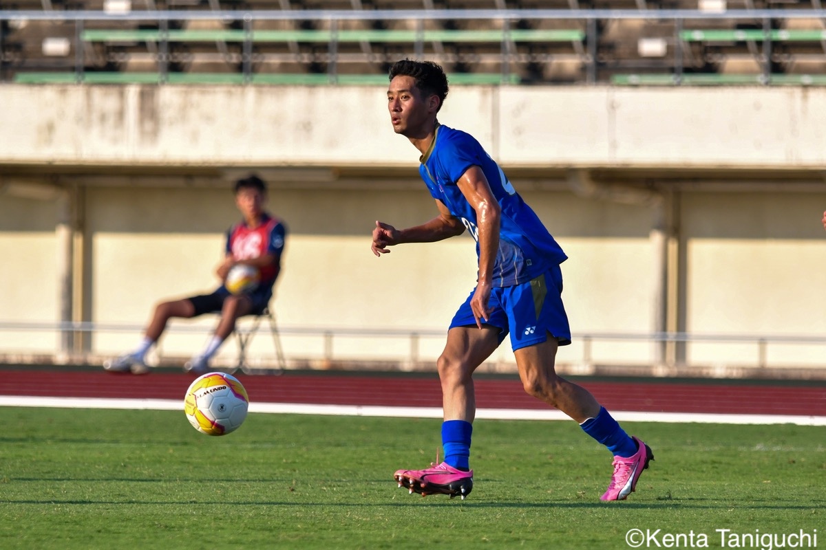 京都産業大スターティングメンバー京産大GK徳若碧都(4年/高川学園高)のセービングがチームを幾度も救ったパスを繋ぎ攻撃の糸口を探る京産大DF逵村健斗(4年/三重高)京産大FW妹尾颯斗(3年/サンフレッチェ広島F.Cユース)はハイプレスで攻撃のチャンスを作った相手を翻弄するドリブルをみせる京産大MF長谷川裟恭(4年/京都橘高)京産大DF田代紘(3年/ヴィッセル神戸U-18)は積極的に攻撃を仕掛ける守備の要としてチームに貢献した京産大DF小野成夢(3年/愛媛FCU-18)京産大MF末谷誓梧(3年/セレッソ大阪U-18)は先制ゴールを決めたボールを捌いてゲームを組み立てる京産大MF伊藤翼(3年/セレッソ大阪U-18)京産大MF滝口晴斗(3年/サンフレッチェ広島ユース)はサイドから仕掛けてゴールに迫る精度の高いキックでボールを供給する京産大MF皿良立輝(2年/セレッソ大阪U-18)京産大は2年連続の準優勝となった阪南大スターティングメンバーキャプテンとしてチームを牽引した阪南大MF工藤紫苑(4年/ベガルタ仙台ユース)阪南大DF髙下麻実(2年/近畿大学附属高)は攻守に奔走したワンタッチで捌きボールを繋げる阪南大MF篠田純之助(4年/東福岡高)阪南大DF川端元(3年/履正社高)はボールを戻して攻撃をを組み立て直す最少失点に抑える活躍をみせた阪南大GK高畑優太(4年/アルビレックス新潟U-18)阪南大MF松井匠(4年/高知高/大宮内定)はサイドからフィジカルを活かした攻撃を仕掛ける得意のドリブルでボールを運ぶ阪南大FW坪井風汰(3年/東邦高)阪南大MF松井空音(1年/帝京大学可児高)のパス供給から攻撃が生まれた堅守を崩さない阪南大DF金子光汰(4年/船橋市立船橋高)阪南大MF秋末翔也(1年/宮崎日本大学高)が決勝ゴールを決めた得点を喜び合うスピードを上げてボールを運ぶ阪南大DF村田一翔(3年/国見高)FKのチャンスを活かす阪南大MF松本楓悟(4年/阪南大学高)最後の最後まで気持ちがブレない阪南大FW角田颯磨(3年/高知高)優勝した阪南大学はスタンドの仲間と勝ちロコ