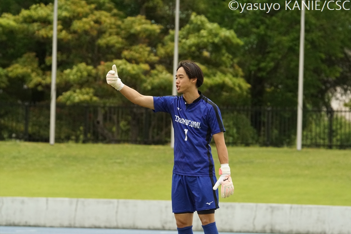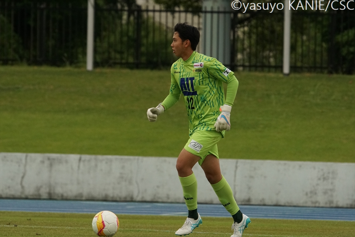 高い集中力でゴールを守った大経大GK吉野顕二(1年/宮崎日本大学高)