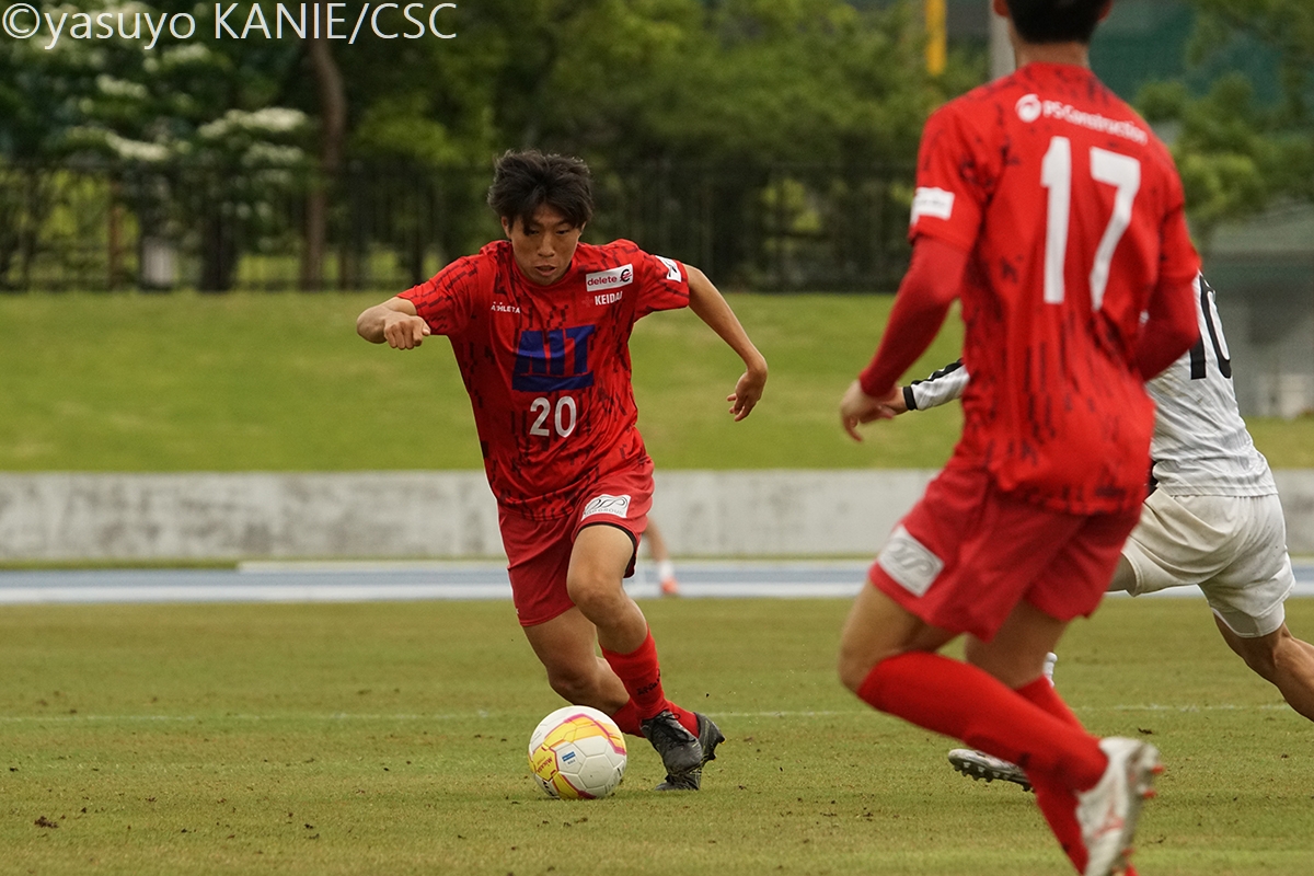 大経大MF桑原柊斗(4年/中京高)は巧みにスペースへと顔を出す