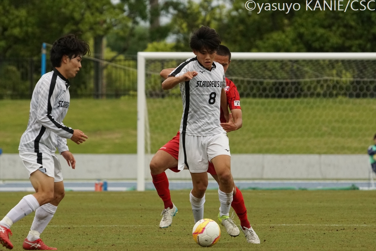 大経大MF桑原颯太(2年/横浜F・マリノスユース)が正確なパスで試合を組み立てる