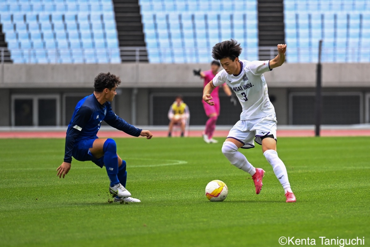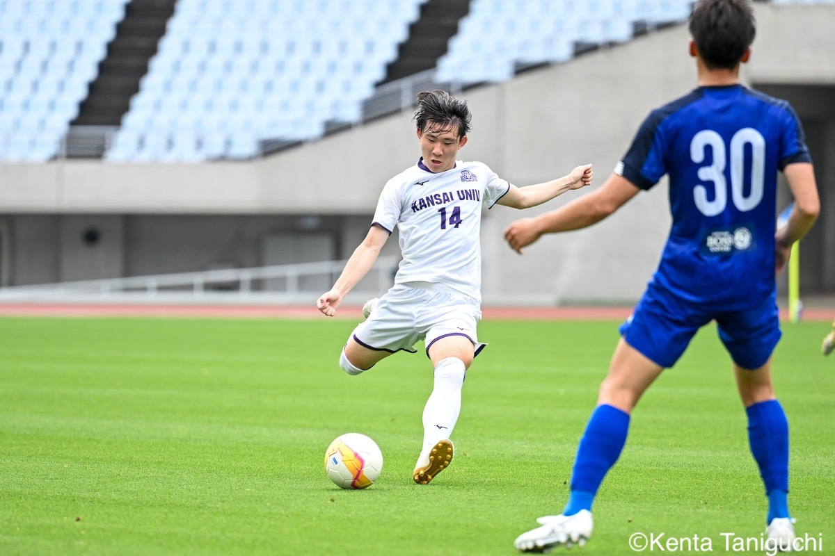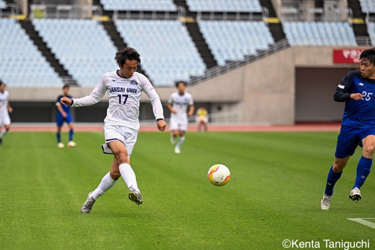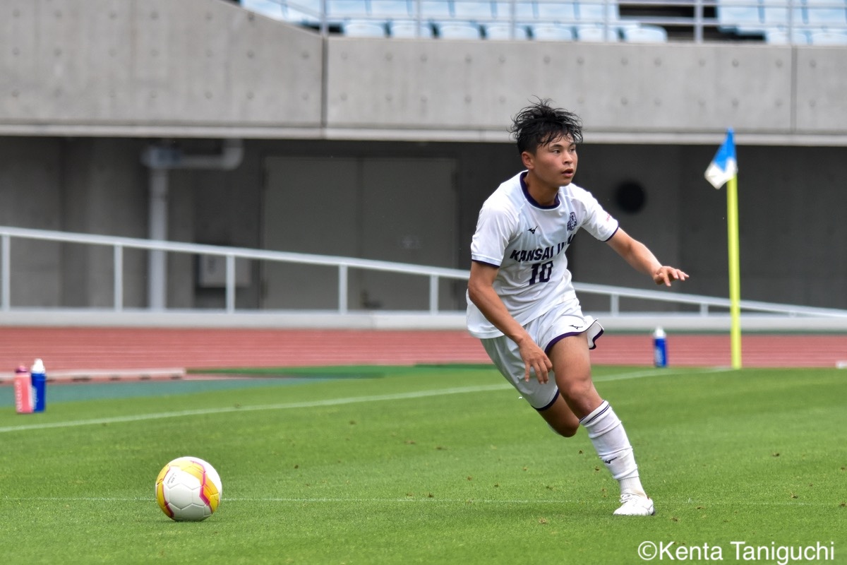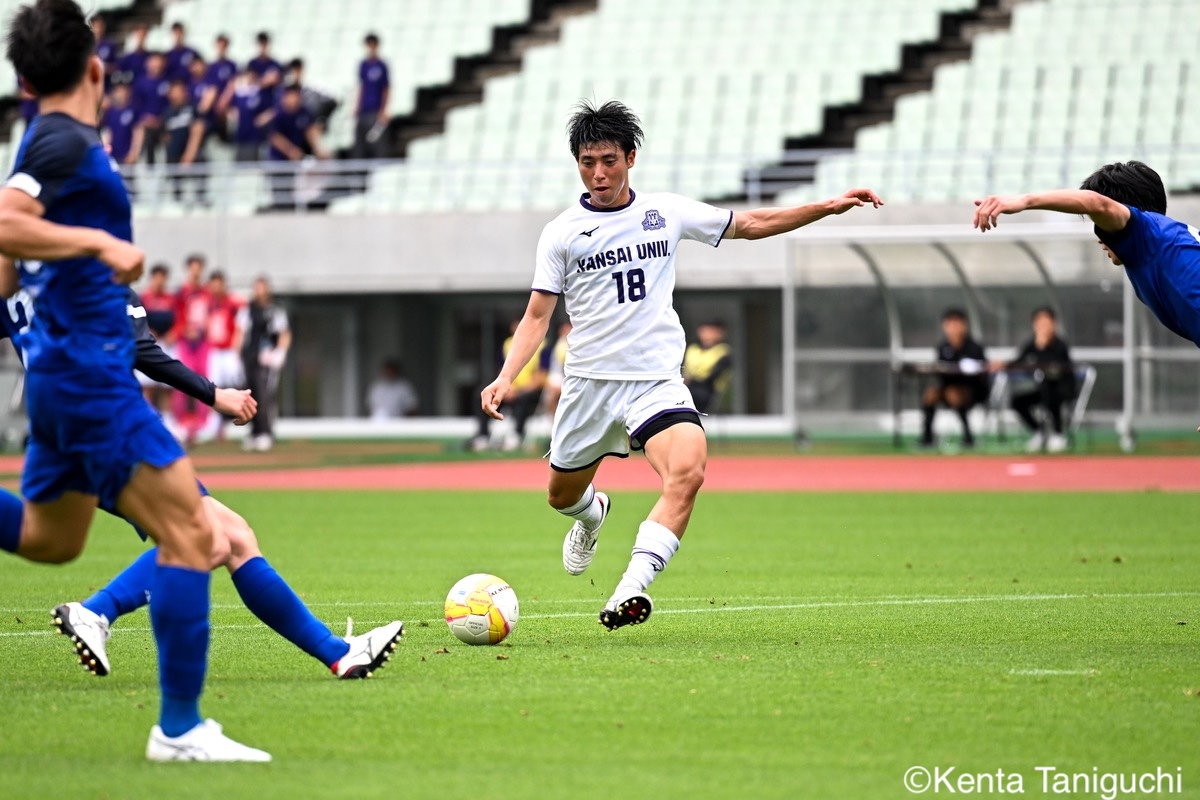 関西大MF三木仁太(4年/ガンバ大阪ユース/藤枝内定)は先制ゴールを決めて良い流れを生み出した