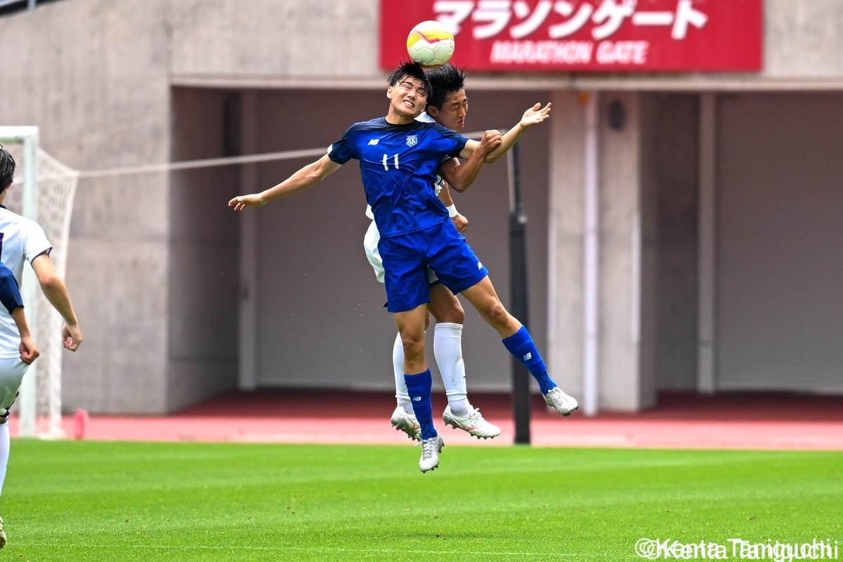 空中戦での強さを発揮する関国大FW佐藤秀一(4年/徳島市立高)