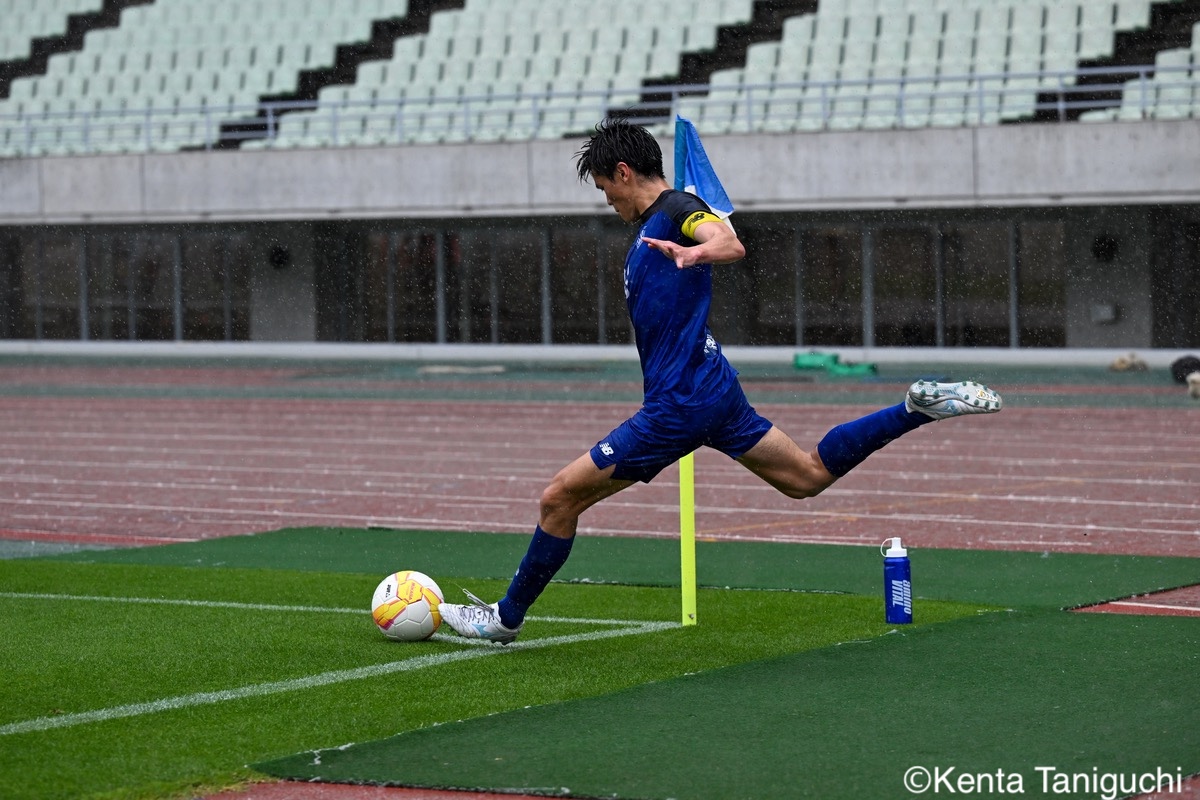 関西大FW堀颯汰(2年/帝京長岡高)は右クロスを放ちゴールチャンスに繋げる