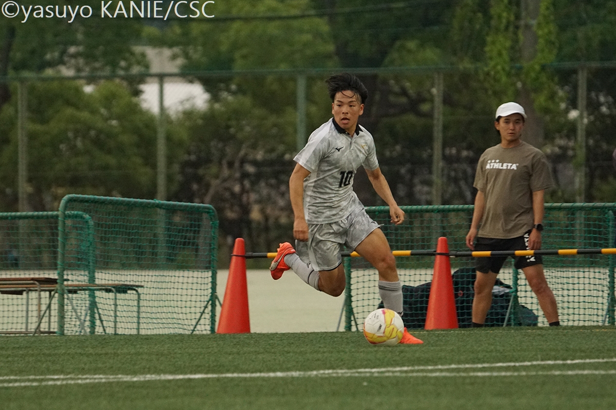 京都橘大MF住芳樹(2年/京都サンガF.C.U-18)は緩急をつけたプレーでリズムを作る