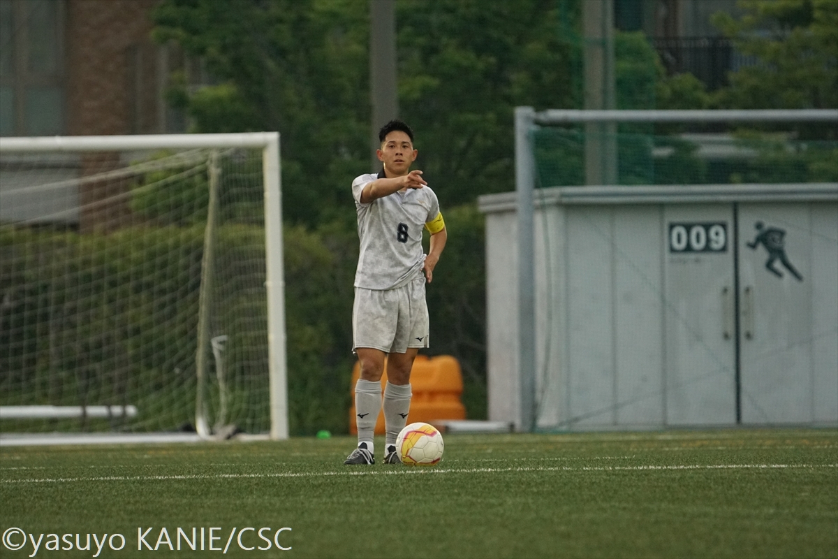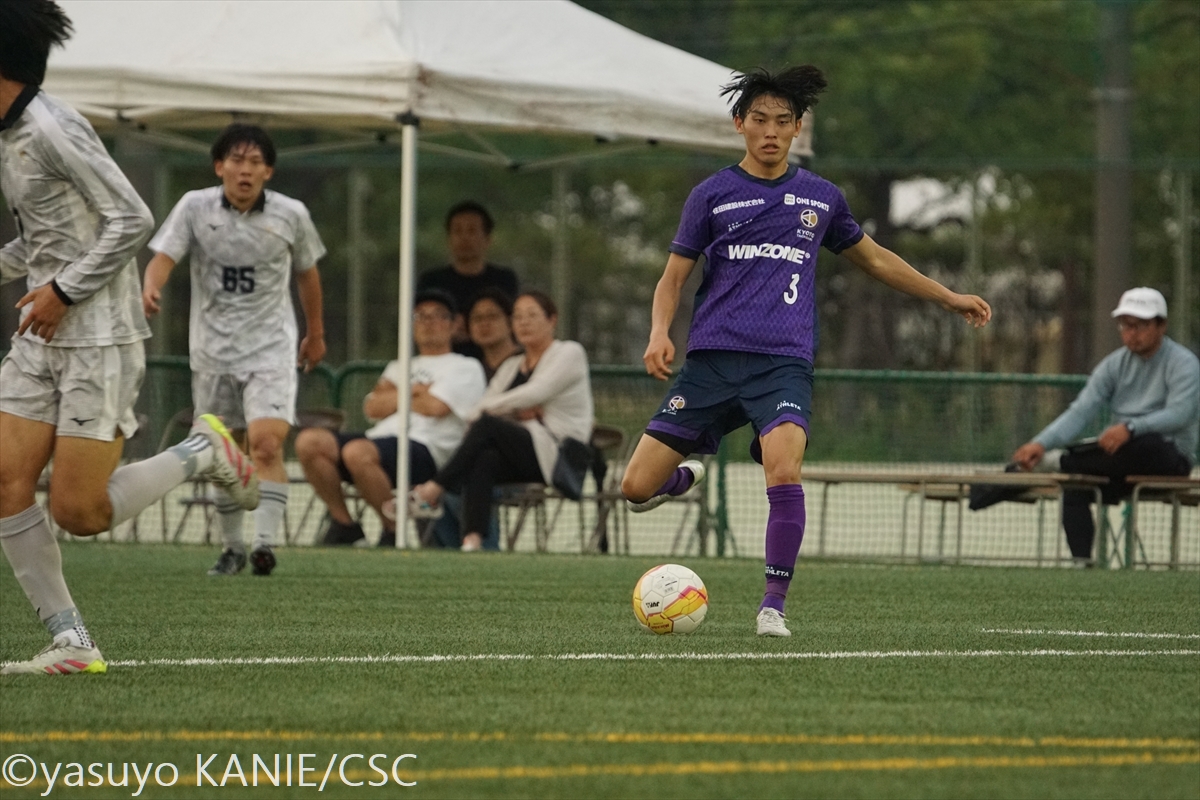 京都橘大DF宮嶋大輝(4年/京都橘高)が最終ラインで冷静に繋いでいく