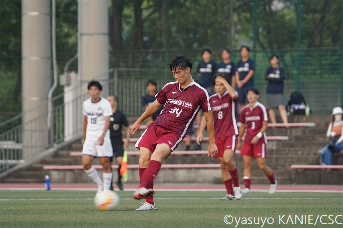 2025/09/03 第49回 総理大臣杯 全日本大学サッカートーナメント1回戦 関西学院大vs産業能率大 フォトギャラリー/互角の勝負は延長戦で決着。三宅がPKを決めて関学大が逆転勝利