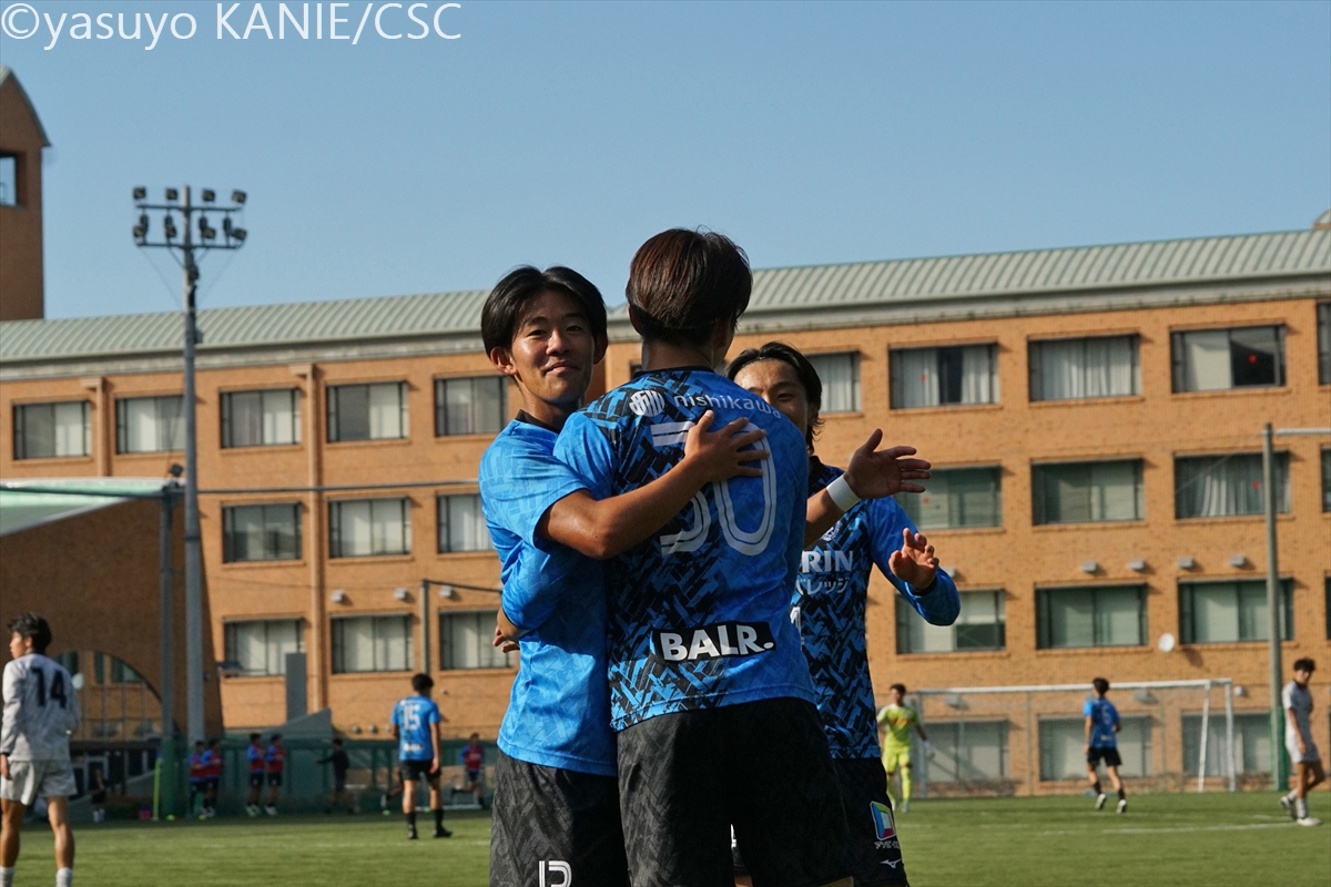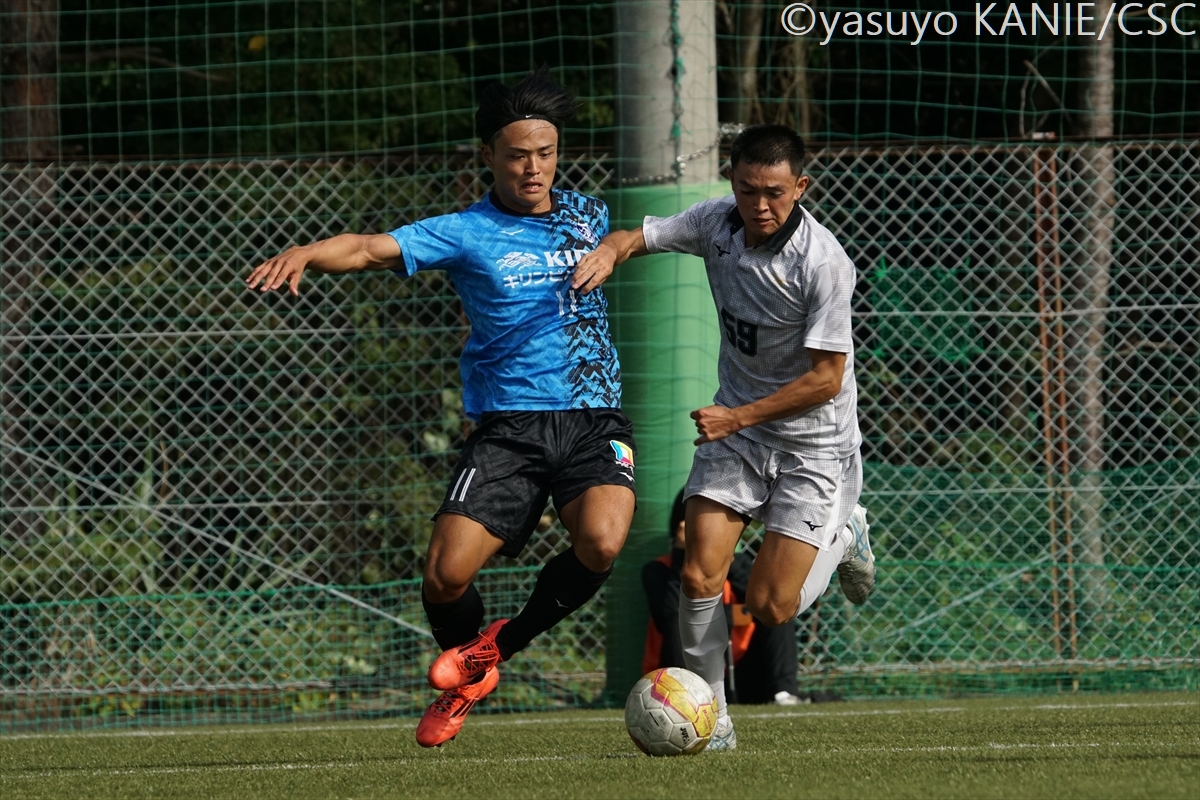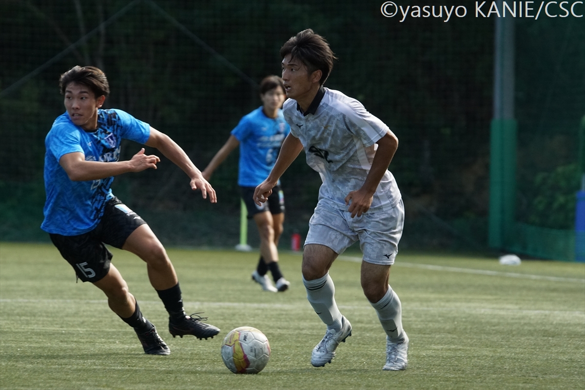 びわこ大GK湯浅礼生(3年/徳島ヴォルティスユース)は最後尾から的確な声掛けMF矢越俊哉(3年/松本国際高)の得点でびわこ大が先制中盤で試合を作ろうと奮闘した神院大MF阿部瑠綺亜(3年/神戸市立科学技術高)神院大DF大河原優斗(4年/ファジアーノ岡山U-18)が局面を変えるパスを狙うリスクにしっかりと対応したびわこ大DF木津周馬(3年/神戸弘陵学園高)MF中馬颯太(3年/熊本県立大津高)の得点でびわこ大が追加点競り合いながらも中へと切り込むびわこ大MF一村聖連(4年/熊本県立大津高)神院大FW菊川泰河(3年/阪南大学高)がボールを奪い攻撃へ転じる効果的な攻撃参加を見せたびわこ大DF木下太陽(2年/モンテディオ山形ユース)神院大MF有園柚希(4年/神戸弘陵学園高)はプレスをかわしボールをキープ力強い前進で相手の脅威となったびわこ大FW杉本晴生(3年/日本文理高)神院大DF伊柳嘉成(2年/神戸弘陵学園高)が裏を狙うボールに対応攻撃に厚みを加えるオーバーラップを見せたびわこ大DF林晃希(2年/JFAアカデミー)びわこ大MF中馬颯太(3年/熊本県立大津高)が変化をつけて相手をかわすタフなプレーで仲間を鼓舞した神院大DF藤本大輝(4年/大阪産業大学附属高)びわこ大FW荒木太志(4年/鹿児島実業高)が勢いあるプレーで攻撃を引っ張るサイドを駆け上がるびわこ大DF角田倫伝(4年/セレッソ大阪U-18)びわこ大MF芳賀海斗(4年/京都橘高)が攻撃へ顔を出す勇気あるプレーでゴールを守った神院大GK本庄拓人(3年/滝川第二高)FW荒木太志(4年/鹿児島実業高)のゴールで突き放すルーズボールにいち早く反応するびわこ大MF吉兼伶真(2年/帝京大学可児高)びわこ大MF矢越俊哉(3年/松本国際高)は緩急をつけたプレーでリズムを作る交代出場のびわこ大MF西垣虹汰(2年/京都橘高)がチームの勢いを増していく