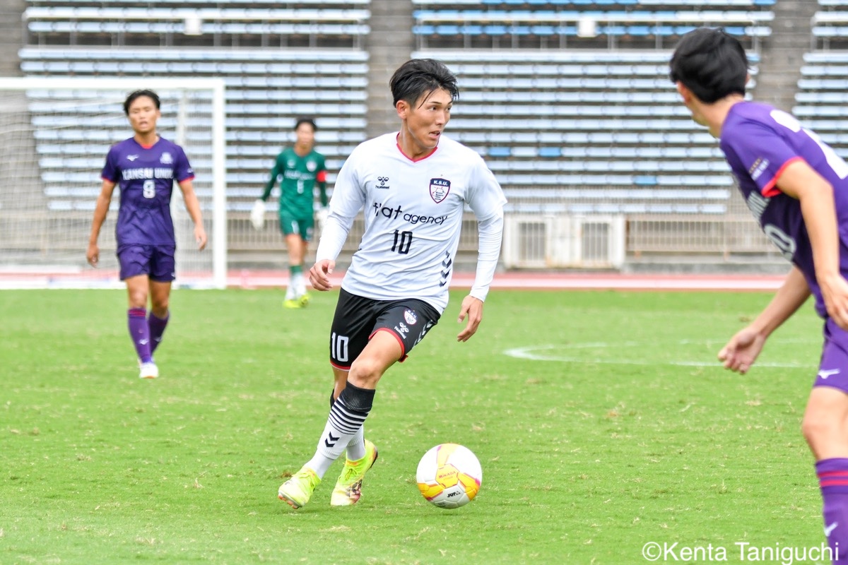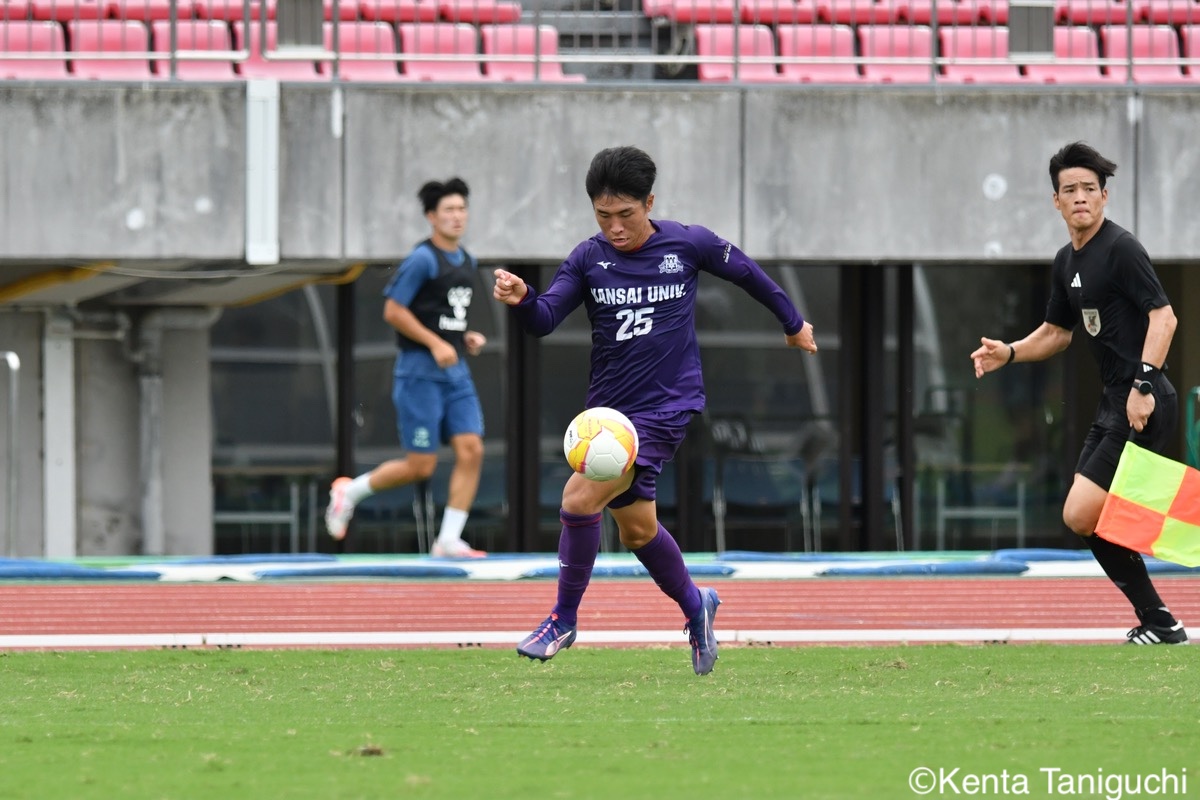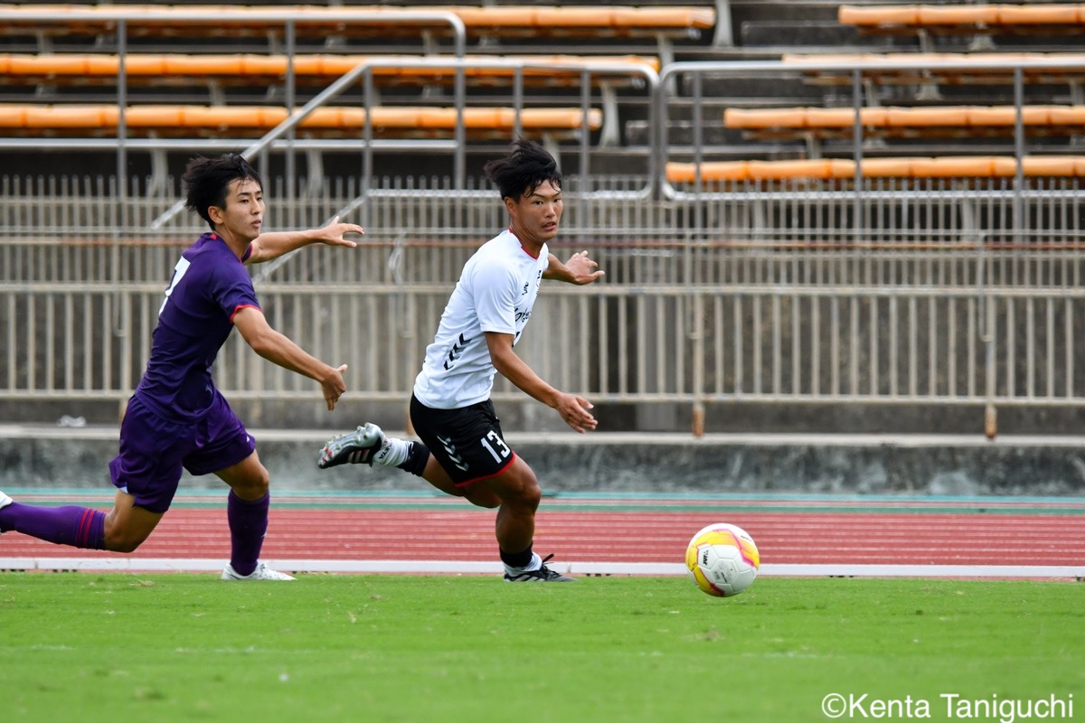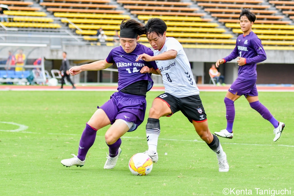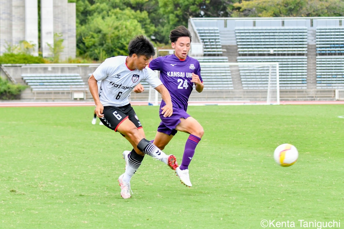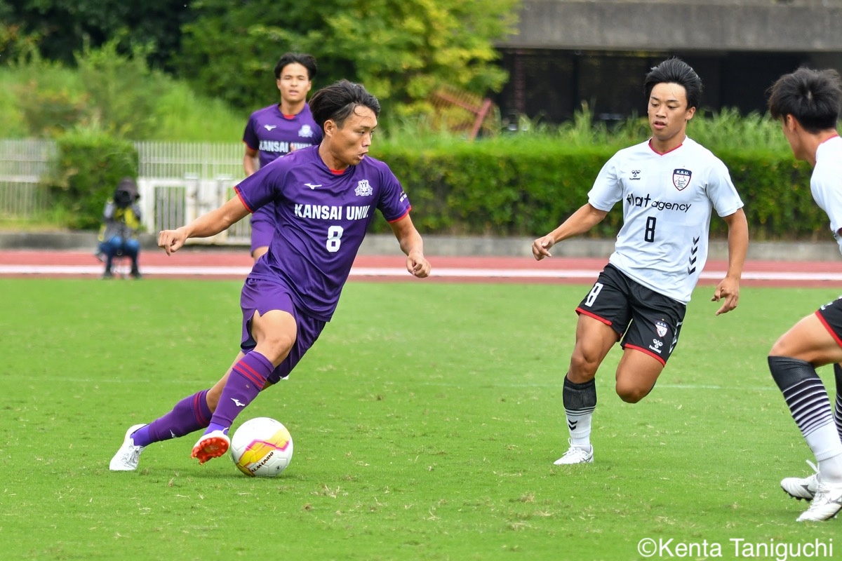 京産大GK徳若碧都(4年/高川学園高/宮崎内定)のキックが状況を好転させる冷静にボールを処理する京産大DF小野成夢(3年/愛媛FCU-18)京産大MF大倉慎平(1年/ガンバ大阪ユース)が中盤でボールを保持する自身で運んで好機を演出する京産大DF吉井泰生(1年/ガイナーレ鳥取U-18)守備での安定感を発揮する京産大DF逵村健斗(4年/三重高)京産大MF滝口晴斗(3年/サンフレッチェ広島F.Cユース)は右サイドから攻守に貢献した競り合いながら相手ゴールに迫る京産大MF末谷誓梧(3年/セレッソ大阪U-18)京産大MF山村朔冬(2年/帝京長岡高)の突破力が相手を苦しめた冷静にボールを保持する京産大FW太仁紫音(1年/真宗大谷学園大谷高)京産大MF伊藤翼(3年/セレッソ大阪U-18)がゲームをコントロールする積極的に攻撃を仕掛ける京産大MF長谷川裟恭(4年/京都橘高)京産大DF田代紘(3年/ヴィッセル神戸U-18)が効果的なクロスを供給するキッカーを務める京産大FW妹尾颯斗(3年/サンフレッチェ広島F.Cユース)京産大MF皿良立輝(2年/セレッソ大阪U-18)は高精度のキックを発揮するゴールを決めて喜びを爆発させる京産大MF福永裕也(2年/京都橘高)歓喜の輪が生まれたロングフィードでチャンスを生み出す関西大GK生嶋健太郎(4年/静岡学園高)関西大MF真田蓮司(3年/東山高)の機動力が幾度も相手を苦しめた堅守を維持する関西大DF桑原航太(3年/帝京長岡高/磐田内定)関西大MF宮川大輝(2年/ガンバ大阪ユース)はアーリークロスを放ちチャンスメイクする緩急を活かして相手を翻弄する関西大MF村井天(3年/飯塚高)関西大DF藤井龍也(1年/セレッソ大阪U-18)がフェイントを駆使して突破に成功するピッチを独走する関西大DF藤谷温大(1年/柏レイソルU-18)関西大MF松名大輝(4年/東海大学付属大阪仰星高)が前線にボールを供給する最後まで闘志をむき出しにして戦った関西大DF大西志有太(4年/磐田東高)関西大MF三木仁太(4年/ガンバ大阪ユース/藤枝内定)の突破に相手は追いつけない悔しさが溢れる試合となった