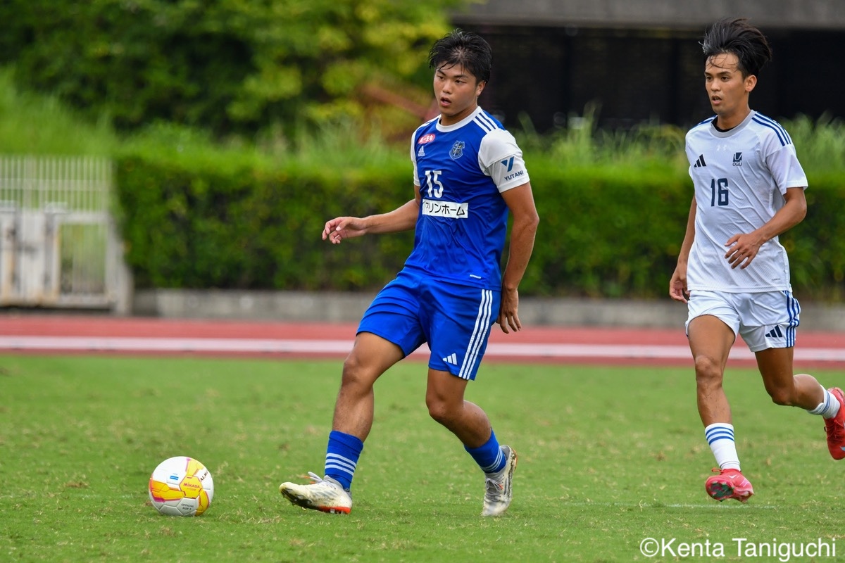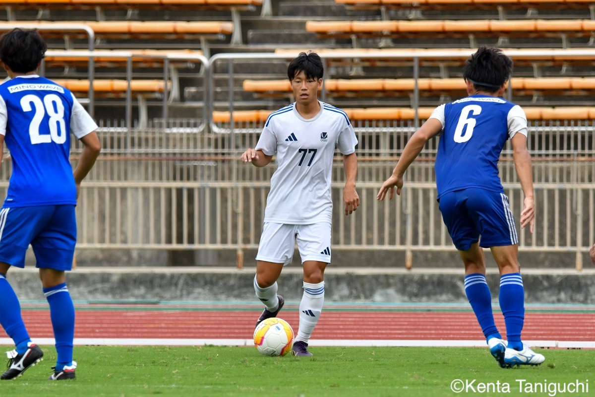 冷静にボールの処理をする大院大MF鳥井禅音(2年/サンフレッチェ広島F.Cユース)