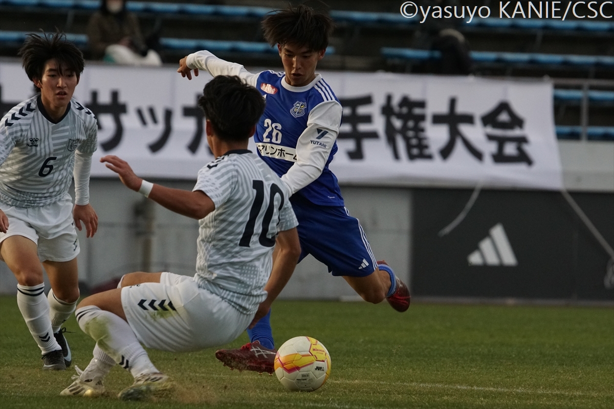 一瞬の隙を逃さず追撃弾を決めた高松大FW久徳庵道(1年/米子北高)