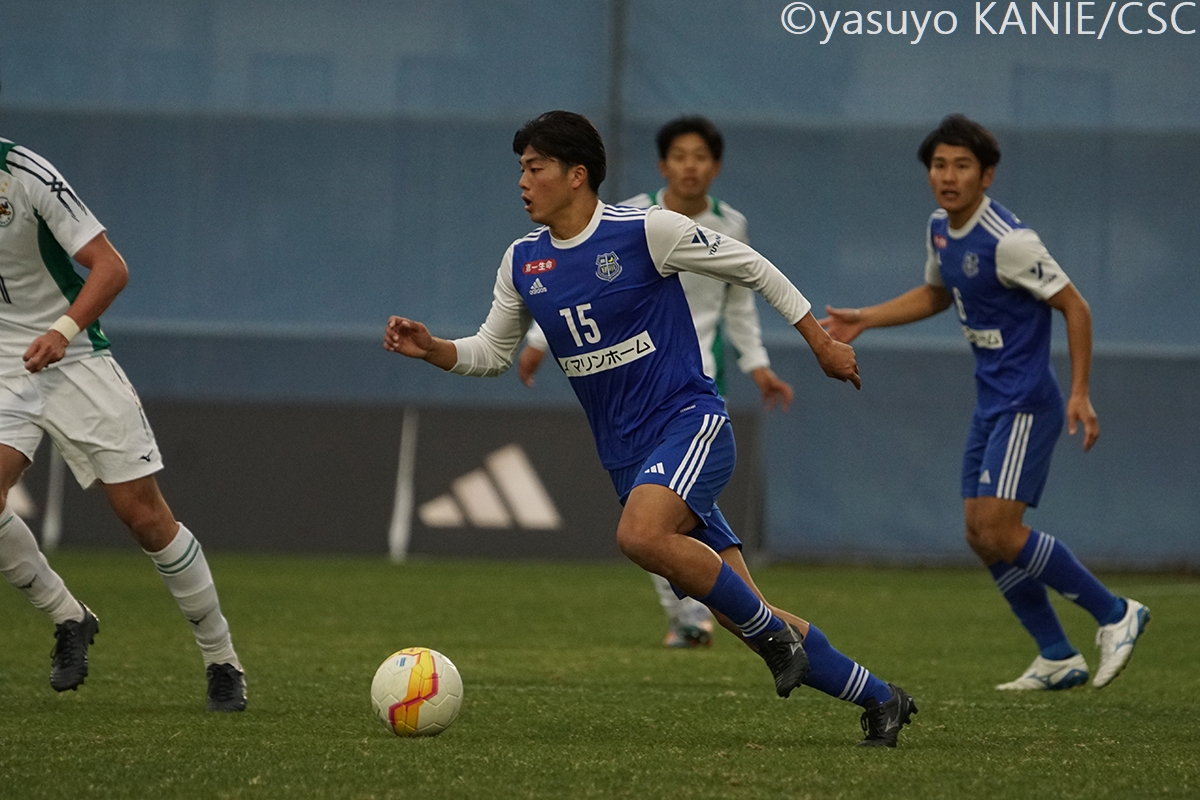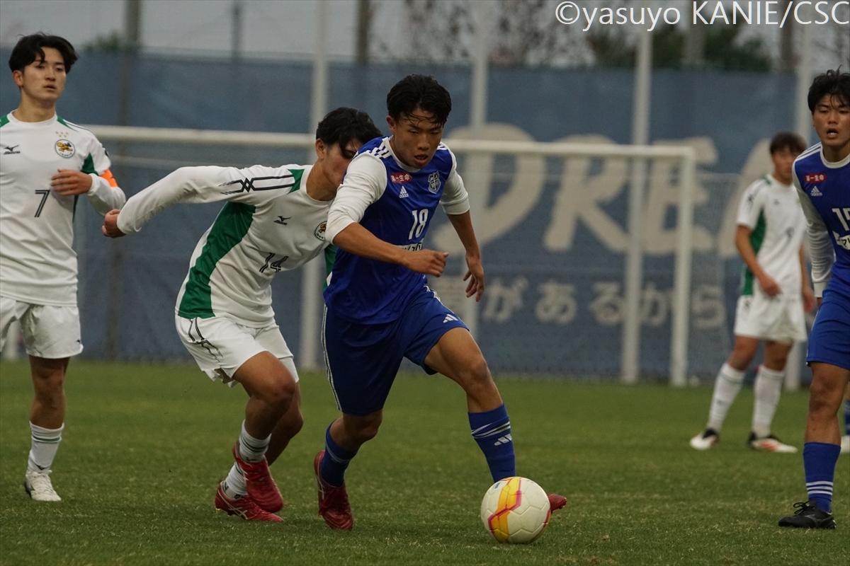 大阪体育大のスターティングメンバー関西学院大のスターティングメンバー大体大FW有竹翔吾(3年/日本大学藤沢高)が前線で力強いキープ縦横に動き、攻守にチームの力となった大体大MF三島典征(1年/立正大学淞南高)大体大MF竹川奏(4年/岡山学芸館高)が前線の動きを見てパスを狙う隙を逃さずMF三島典征(1年/立正大学淞南高)が仕留めて、大体大が先制関学大DF西谷京祐(4年/関西学院高等部)がクレバーなカバーリング中盤でタフに戦った関学大MF長滝谷洸斗(3年/近江高)大体大DF西口大稀(2年/立正大学淞南高)が最終ラインから大きな展開を図るビッグセーブでチームを助けた関学大GK宮本流維(4年/名古屋グランパスU-18/琉球内定)関学大DF山本楓大(3年/サガン鳥栖U-18/京都内定)がサイドを駆け上がりチャンスへつなげるルーズボールにいち早く反応する大体大DF三原拓也(2年/徳島ヴォルティスユース)関学大MF内田康介(2年/名古屋グランパスU-18)は正確なクロスで好機につなげるテンポよいパスで前線を動かす関学大MF三宅凌太郎(4年/帝京長岡高)関学大MF棟近禎規(2年/興國高)が機を逃さずゴールへ向かう的確な判断でピンチを防ぐ大体大DF七星優斗(4年/初芝橋本高)大体大MF豊田将大(4年/サンフレッチェ広島F.Cユース)が身体を張り、ボールを渡さない左足でクロスを入れる関学大DF村井清大(3年/ヴィッセル神戸U-18)関学大MF酒井柊維(4年/藤枝東高)が味方に要求を出しながらリズムを作る攻撃に厚みを加える関学大DF古田東也(3年/V・ファーレン長崎U-18)関学大DF野中陸(4年/ガンバ大阪ユース)がサイドを崩して切り込んでいく