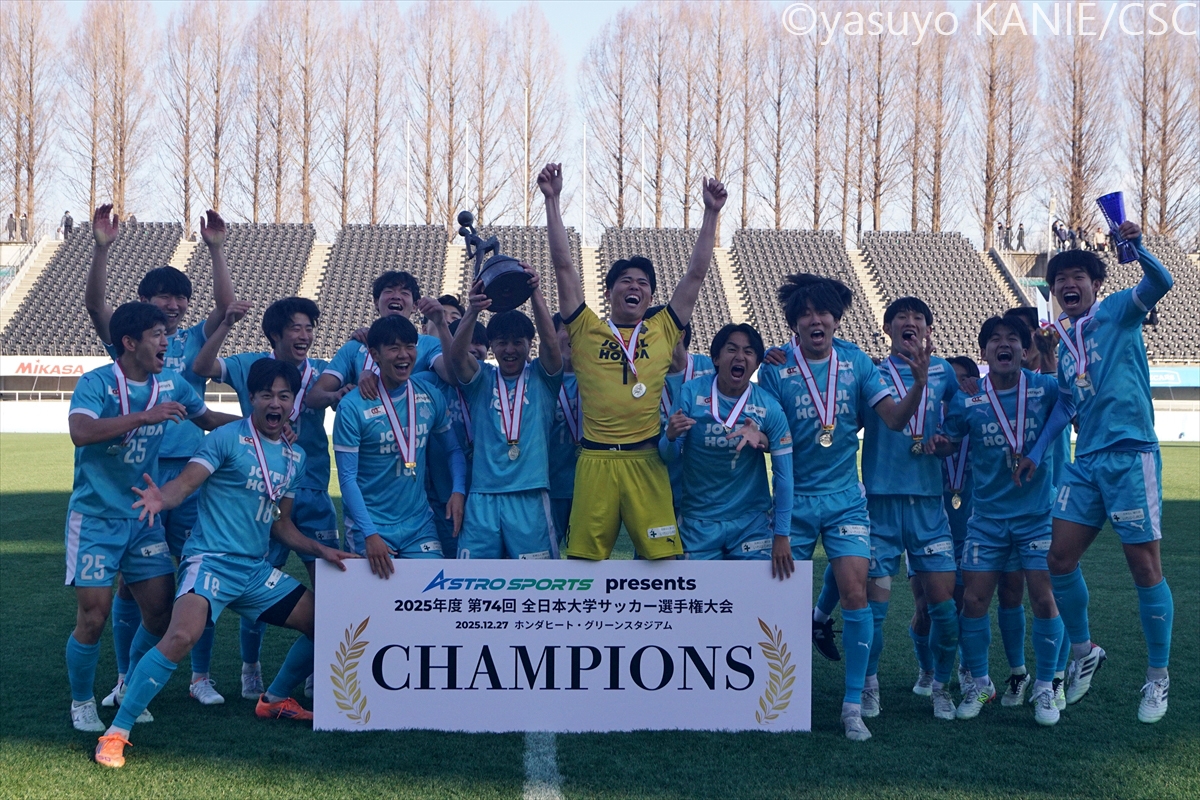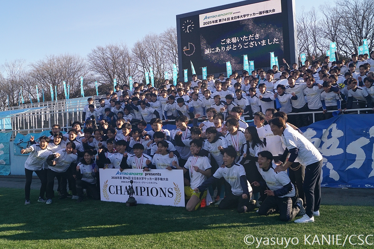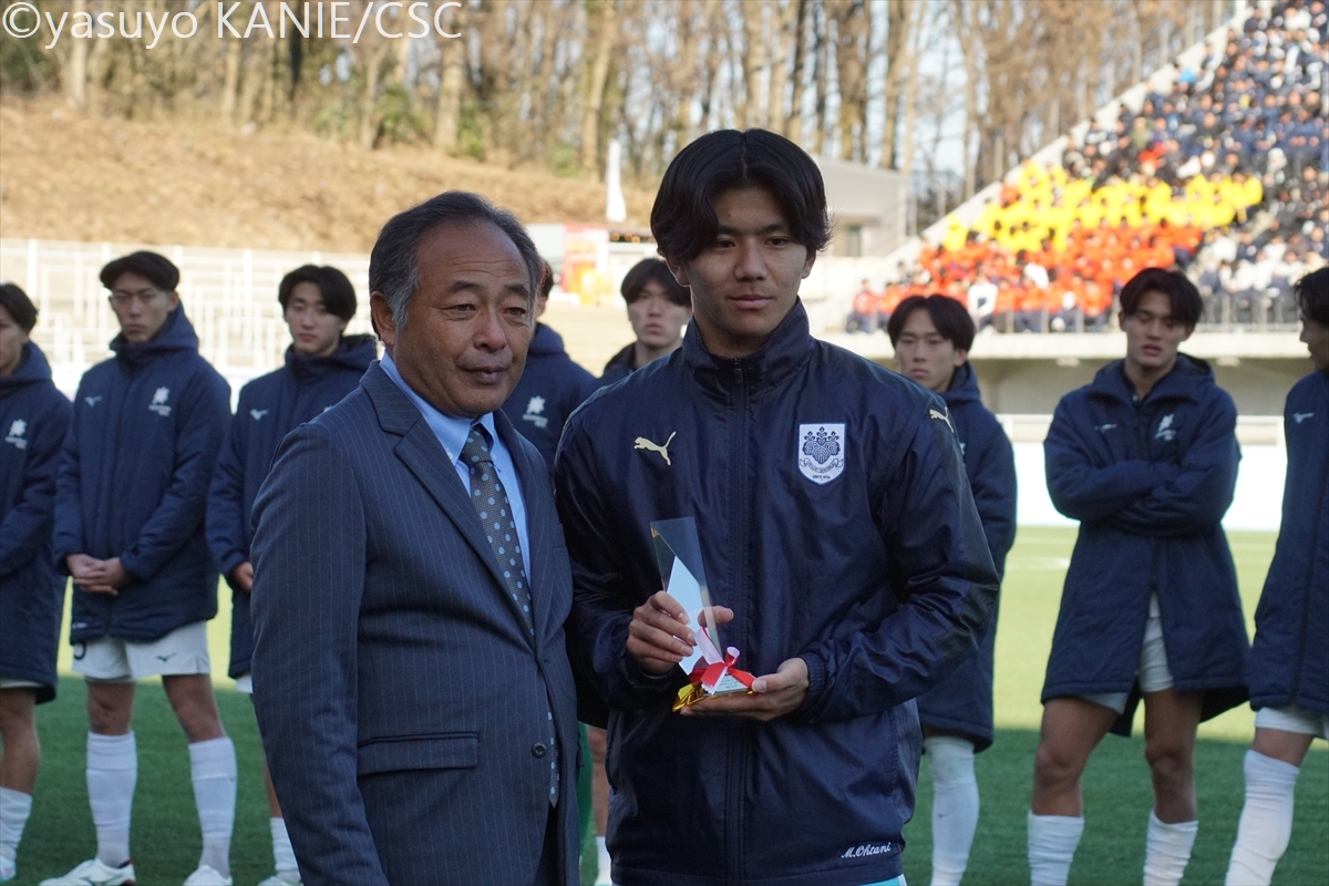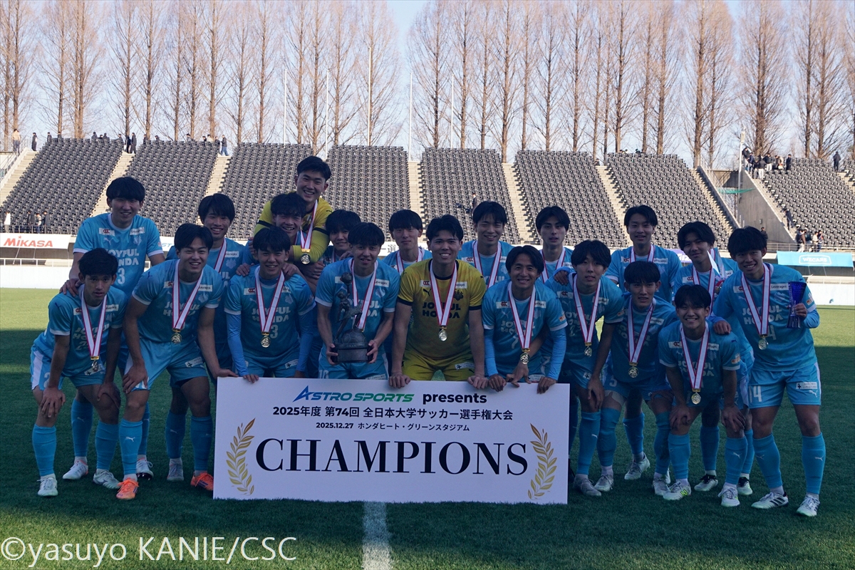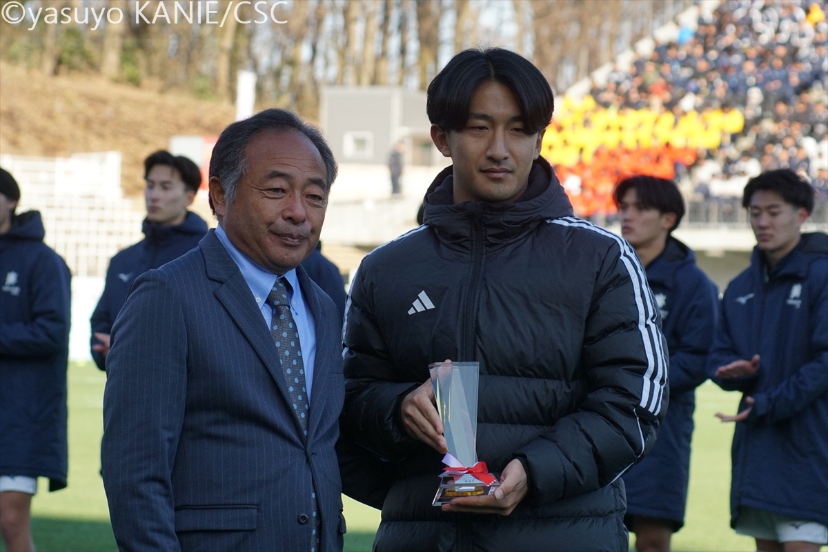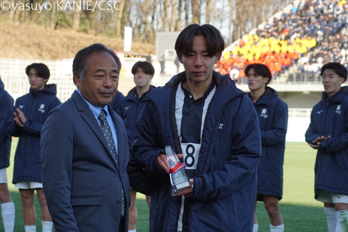 筑波大のスターティングメンバー国士舘大のスターティングメンバー国士大MF吉岡優希(4年/東福岡高/熊本内定)が相手をかわして前へ安定した守備力を見せた筑波大DF小川遼也(3年/カターレ富山U-18)筑波大MF徳永涼(3年/前橋育英高)が守備の穴を塞ぎ、試合を組み立てる裏を狙うボールを処理する筑波大DF池谷銀姿郎(3年/横浜FCユース/G大阪内定)筑波大DF布施克真(1年/日本大学藤沢高)は先制点をアシスト相手を抜くタイミングを図る国士大FW高柳英二郎(4年/サンフレッチェ広島F.Cユース)国士大DF臼井春翔(2年/栃木SCU-18)がサイドからチャンスを切り開く出しどころを冷静に探る国士大MF篠﨑遥斗(2年/前橋育英高)国士大FW村上竜規(2年/栃木SCU-18)が力強く前へと突き進む守備でもポテンシャルを見せた筑波大MF矢田龍之介(1年/清水エスパルスユース)国士大FW本間凜(3年/関東第一高)が前線でタメを作る最終ラインからパスを差し込む国士大DF川原颯斗(4年/北海道コンサドーレ札幌U-18/札幌内定)筑波大FW小林俊瑛(3年/熊本県立大津高)がボールをおさめてパスを出すクリーンシードで優勝に貢献した筑波大GK佐藤瑠星(4年/熊本県立大津高/浦和内定)国士大MF須藤太一(4年/三菱養和SCユース)が一気にサイドから仕掛けるテンポよくパスを送る筑波大MF清水大翔(2年/セレッソ大阪U-18)筑波大MF山崎太新(4年/横浜FCユース/大分内定)が深い位置からドリブルで持ち上がる再三好セーブを見せた国士大GK渡辺勇樹(2年/桐光学園高)だが、悔しい3失点国士大DF工藤珠凜(3年/日章学園高)は身体を張った守備で相手に対応先制点を決めた筑波大FW大谷湊斗(1年/昌平高)が主将の山崎から祝福されるここまで好調を見せてきた国士大MF皆川春輝(2年/日章学園高)だが、この日はゴールならず筑波大MF篠田翼(3年/昌平高)がリズミカルなドリブルで相手陣内を切り裂く攻守に渡って存在感を見せた筑波大DF鈴木遼(4年/昌平高)筑波大FW山下景司(1年/熊本県立大津高)が大きな追加点最後までファイトあるプレーで戦った国士大DF沖村大也(1年/東山高)国士大MF井野佑優(3年/サンフレッチェ広島F.Cユース)がリズムを変えようと奮闘GKをかわしてゴールへ向かう筑波大FW大谷湊斗(1年/昌平高)勝利を大きく引き寄せる3点めに喜び爆発さらなる得点を果敢に狙っていく筑波大MF小松悠太(4年/市立浦和高)国士大は優勝に届かず涙国士大の主将MF吉岡優希(4年/東福岡高/熊本内定)は悔し涙が止まらない大会得点王には日体大FW篠田大輝(4年/昌平高/鳥取内定)が輝いた国士大MF吉岡優希(4年/東福岡高/熊本内定)はMIPに選出筑波大FW大谷湊斗(1年/昌平高)が大会MVPに国士大は準優勝でインカレを終えた8⼤会ぶり10回⽬の優勝を飾った筑波大歓喜のカップリフト応援で力をくれた仲間と喜びを分かち合う支えてくれた仲間とともに