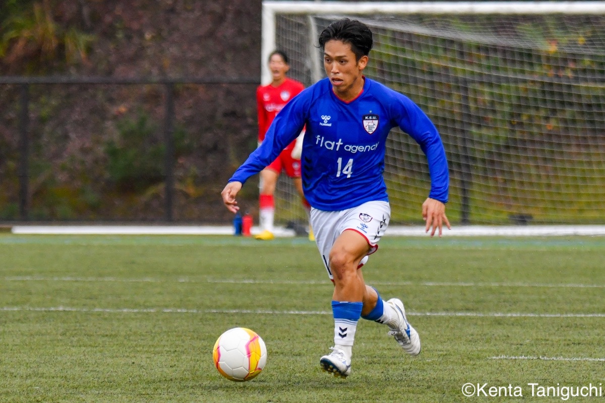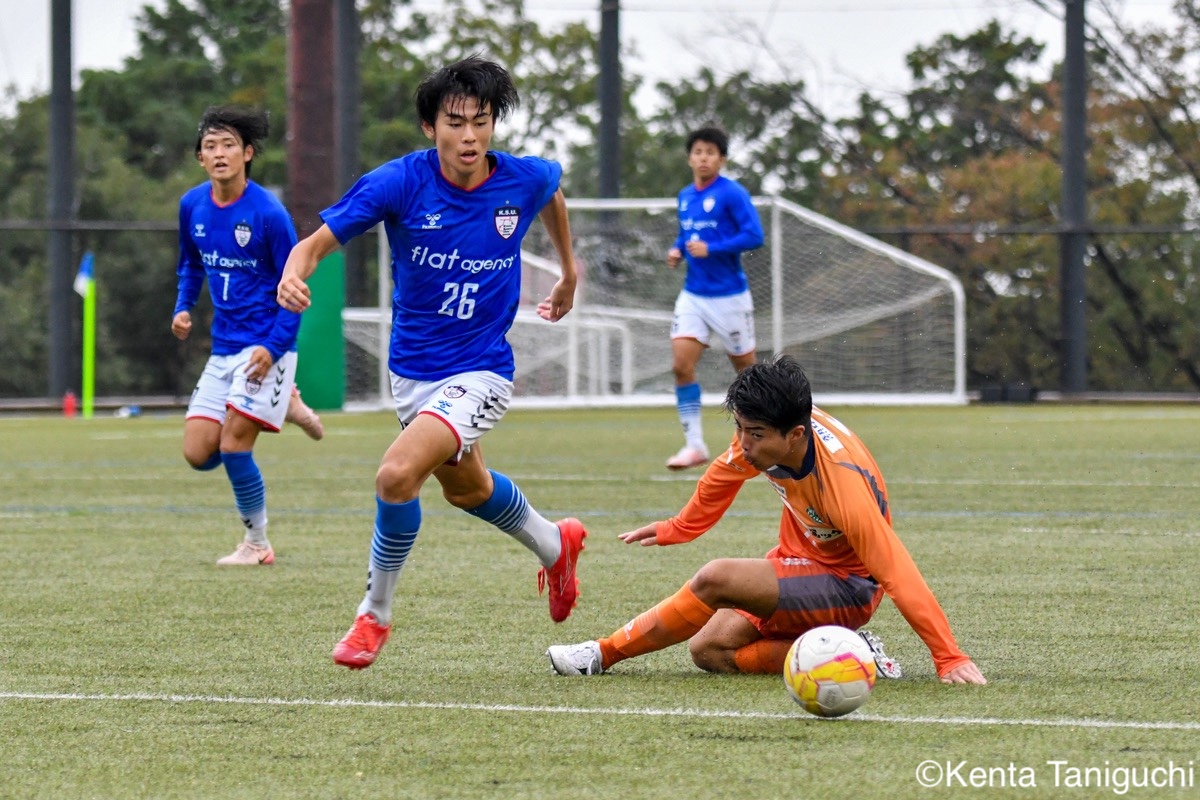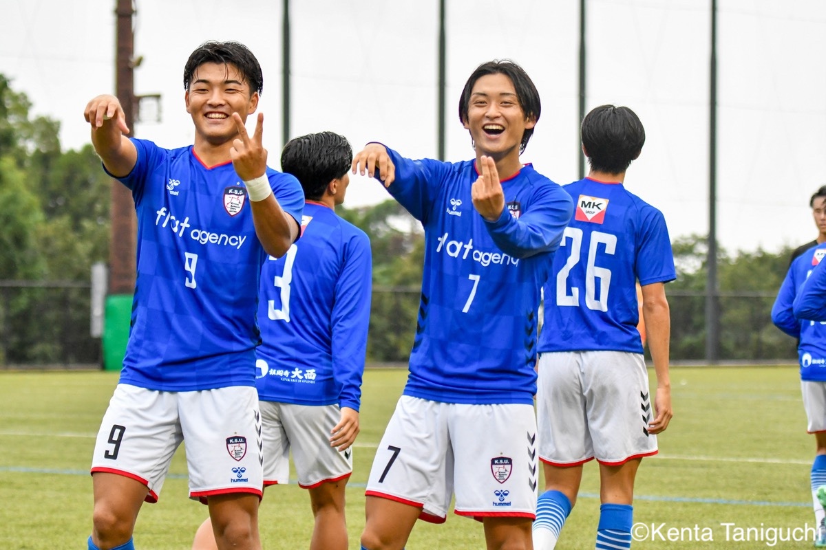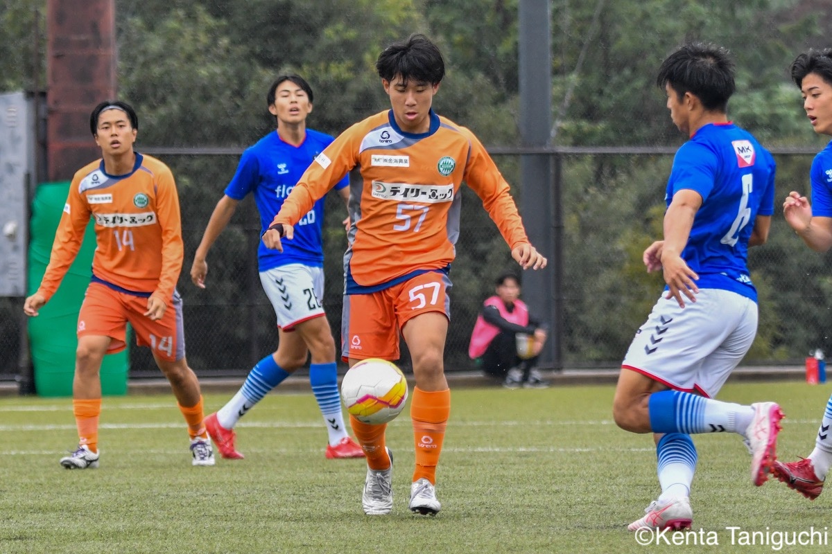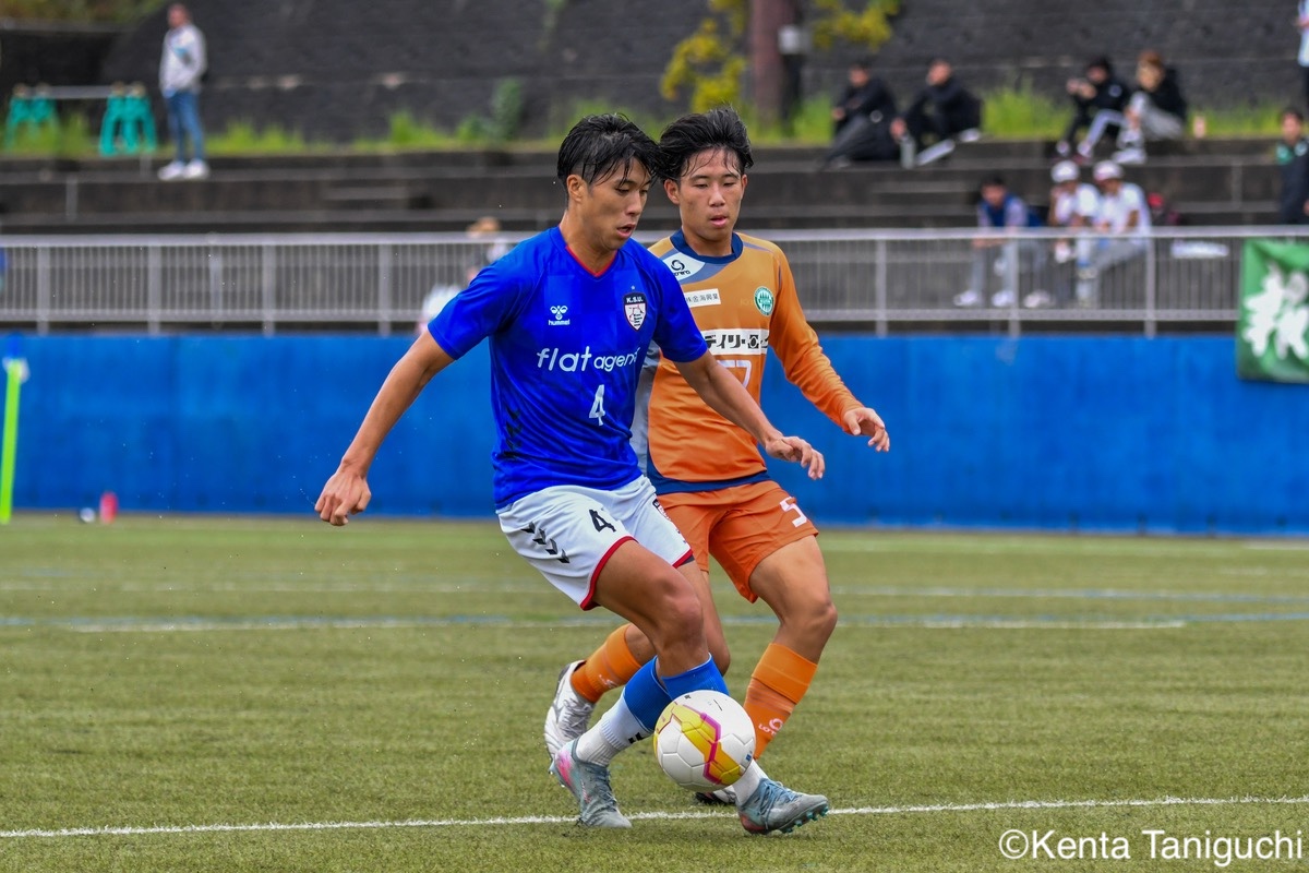 果敢に攻撃を仕掛ける関福大MF茂木碧生(3年/前橋育英高)関福大MF高下仁誓(3年/サンフレッチェ広島F.Cユース)は右サイドからゴールに迫る豊富な体力を活かし攻守に貢献した関福大DF和泉佳州真(4年/作陽高)関福大DF田實優翔(2年/日章学園高)はワンタッチでボールを捌く意地の1点を返した関福大FW矢野陸(1年/金光大阪高)関福大GK杉野伸太朗(4年/大分トリニータU-18)は前線にボールを送るタイミング良く体を入れてボールを奪取する京産大MF大倉慎平(1年/ガンバ大阪ユース)京産大GK徳若碧都(4年/高川学園高/宮崎内定)は最少失点に抑えるセービングをみせた右サイドから攻撃を仕掛けて相手の脅威となった京産大MF滝口晴斗(3年/サンフレッチェ広島F.Cユース)京産大MF長谷川裟恭(4年/京都橘高)は中盤から攻撃を組み立てた相手の意表を突いたプレーをみせる京産大DF沖野眞之介(1年/高川学園高)京産大MF伊藤翼(3年/セレッソ大阪U-18)は3点目を決めた値千金弾を終了間際に押し込んだ京産大DF小野成夢(3年/愛媛FCU-18)京産大FW高川諒希(1年/カターレ富山U-18)は先制ゴールを決めて試合の流れを掴んだ前半終了間際に2点目を決めた京産大MF皿良立輝(2年/セレッソ大阪U-18)ゴールが決まり歓喜の輪が生まれる