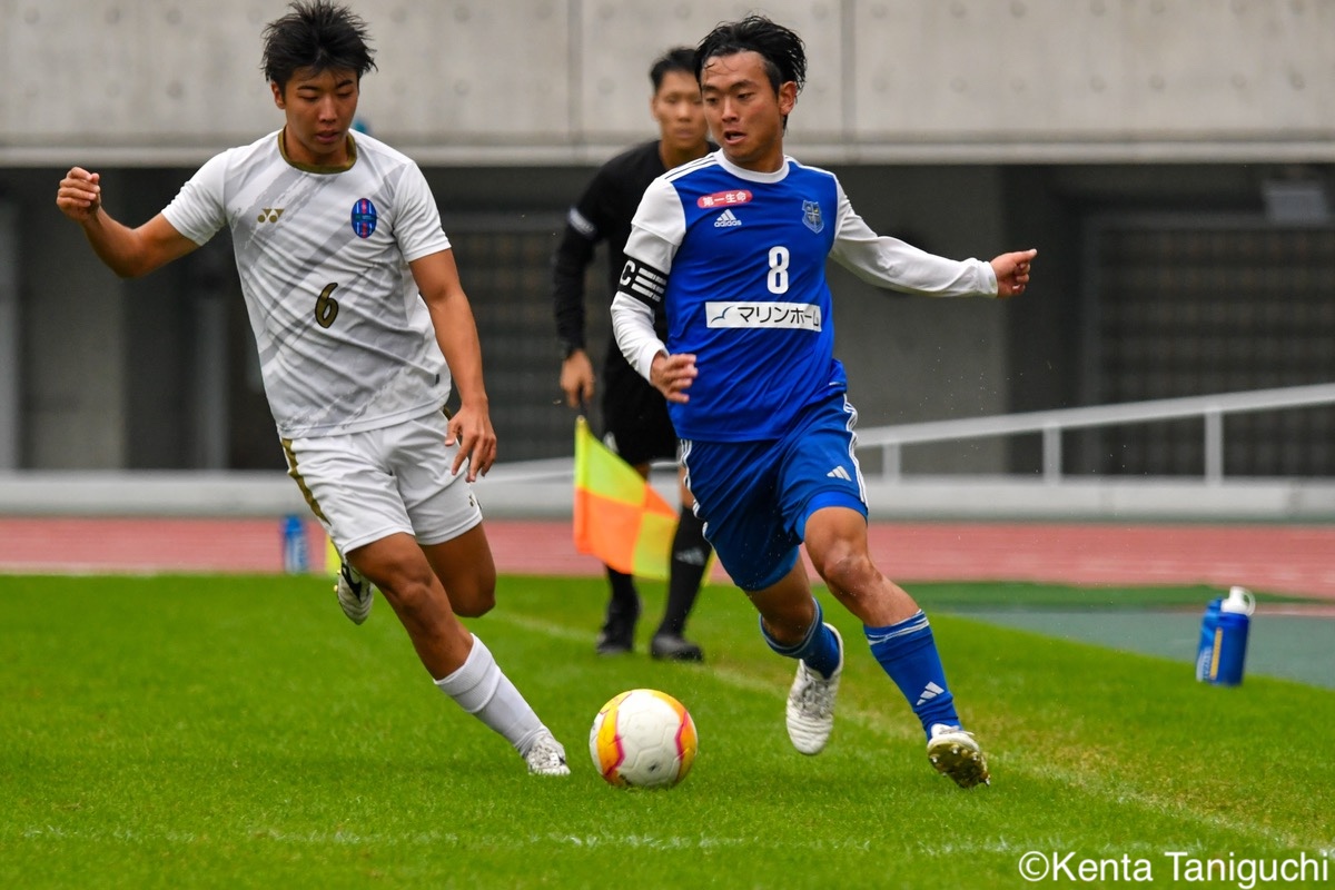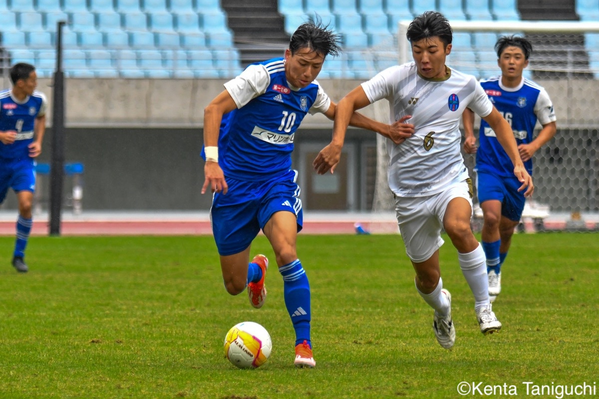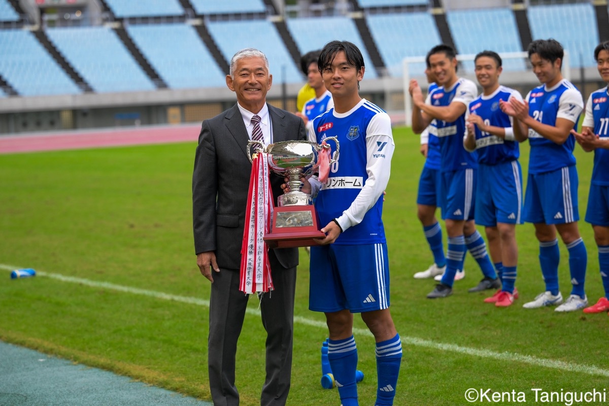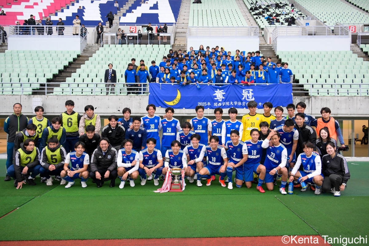 冷静にピッチを見渡す阪南大DF佐々木裕貴(3年/ベガルタ仙台ユース)阪南大MF秋末翔也(1年/宮崎日本大学高)は激しく競り合う攻撃の起点として活躍した阪南大MF櫻井文陽(4年/阪南大学高/群馬内定)阪南大DF吉村駿輝(4年/奈良育英高)は空いたスペースにパスを供給ロングボールを前線に送る阪南大DF高月昂希(4年/大社高)阪南大MF山田晃市(3年/四国学院大学香川西高)のプレーが相手を翻弄ゴールをアシストした阪南大FW金本毅騎(3年/セレッソ大阪U-18/C大阪内定)阪南大DF金子光汰(4年/船橋市立船橋高/松本内定)はディフェンス陣を統率後方からロングフィードを送る阪南大GK福島真斗(3年/高川学園高)阪南大MF松井匠(4年/高知高/大宮内定)がサイドを切り裂く効果的なパス供給が光った関学大DF西谷京祐(4年/関西学院高等部)関学大GK宮本流維(4年/名古屋グランパスU-18/琉球内定)は見事なセービングをみせた3点目をアシストした関学大MF棟近禎規(2年/興國高)関学大FW小西春輝(4年/サガン鳥栖U-18)の攻撃が相手を圧倒堅守を維持した関学大DF古田東也(3年/V・ファーレン長崎U-18)関学大DF山本楓大(3年/サガン鳥栖U-18/京都内定)はサイドから攻撃を仕掛け、2ゴールをアシスト柔らかいタッチで相手のタイミングをずらす関学大DF野中陸(4年/ガンバ大阪ユース)関学大MF三宅凌太郎(4年/帝京長岡高)は中盤で高い技術力を発揮多彩なフェイントを駆使してゴールに迫った関学大MF酒井柊維(4年/藤枝東高)関学大MF内田康介(2年/名古屋グランパスU-18)がピッチを独走する積極的にゴールを狙う関学大DF村井清大(3年/ヴィッセル神戸U-18)関学大MF前北直哉(3年/帯広北高)は緩急を織り交ぜて相手を翻弄ハットトリックの活躍で勝利に導いた関学大MF先田颯成(2年/サガン鳥栖U-18)ゴールを喜び合う関学大は残り1節を残して優勝を決めた3年ぶり32度目の優勝を飾った関学大 表記の学年は試合日のものとなります。