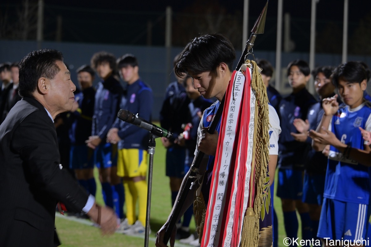 4部Bリーグ優勝を達成した京都外国語大学4部Bリーグで準優勝となった神戸市外国語大学4部Bリーグ3位は大阪工業大学関西外国語大学が4部Aリーグで優勝4部Aリーグで準優勝となった神戸国際大学4部Aリーグ3位の成績をおさめた滋賀大学経済・DS学部3部リーグで優勝した大阪国際大学3部リーグ準優勝の京都先端科学大学流通科学大学が3部リーグ3位に立命館大学は2部リーグ優勝し、来季1部へ復帰びわこ成蹊スポーツ大学は2部リーグ準優勝となった2部リーグ3位の表彰を受ける近畿大学甲南大学は1部リーグ3位となり、インカレ初出場も決めた阪南大学は連覇ならずも、堂々たる1部リーグ2位優勝を果たした関西学院大が優勝旗を受け取る中川拓人幹事長による閉会宣言関西学院大が3年ぶり32回めの王者となった