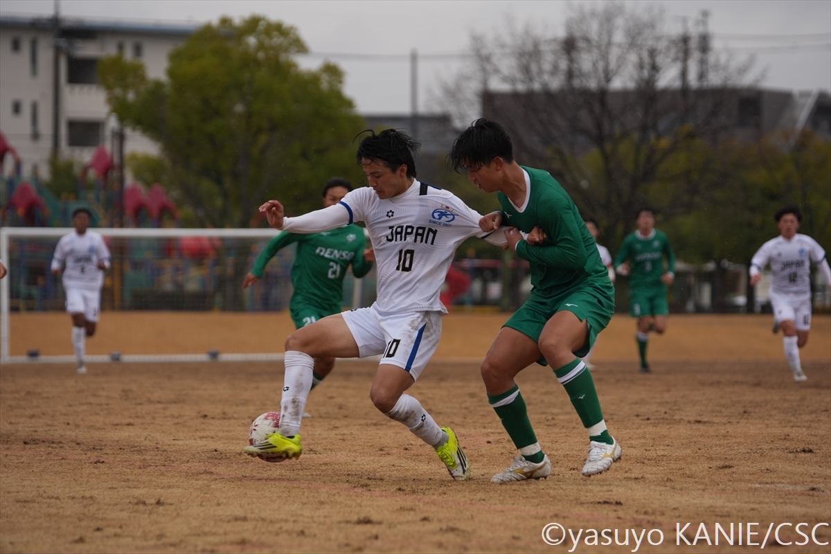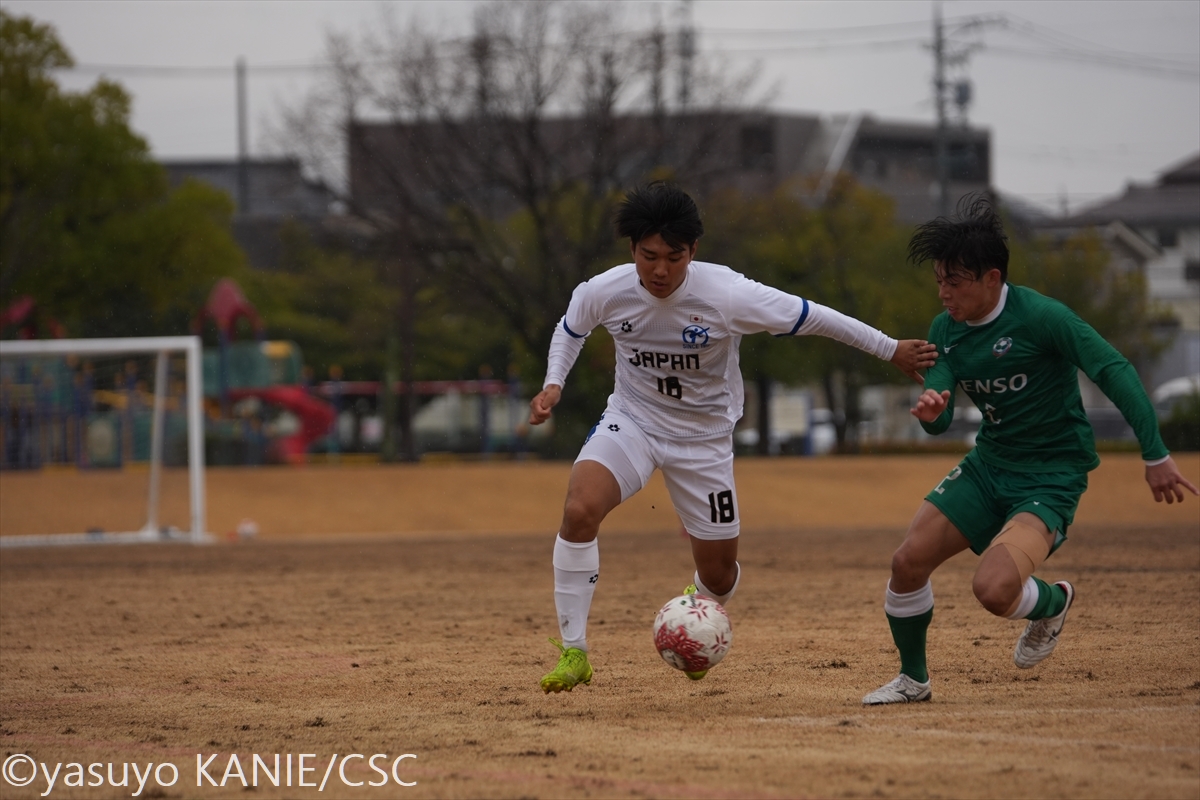 日本高校選抜DF齊藤空人(鹿島学園高3年)が守備ラインを整える年上の選手相手にも堂々たるプレーで渡り合った日本高校選抜DFメンディーサイモン友(流通経済大学付属柏高2年)日本高校選抜GK金沢楓(矢板中央高3年)は懸命のセーブでチームをもり立てる守備でもチームに貢献した日本高校選抜MF木下永愛(鹿島学園高3年)関東選抜B MF皆川春輝(国士舘大2年/日章学園高)が強度の高いプレーで攻撃を引っ張る巧みにスペースへと抜け出す関東選抜B 小池直矢(法政大3年/前橋育英高)関東選抜B MF長田叶羽(中央大1年/ガンバ大阪ユース)が中盤を支配速いパスでプレスを外す関東選抜B FW五木田季晋(日本大3年/川崎フロンターレU-18/水戸内定)日本高校選抜MF岩﨑天利(熊本県立大津高3年)がターンして相手をかわす足を伸ばしてパスをカットする日本高校選抜DF清水朔久(鹿島学園高3年)関東選抜B FW小林俊瑛(筑波大3年/熊本県立大津高)がルーズボールにいち早く反応寄せてくる相手をうまくガードする関東選抜B DF内山開翔(明治大2年/帝京長岡高)関東選抜B MF日隠ナシュ大士(産業能率大3年/堀越高)が巧みなボールタッチ好パスに反応してラインブレイクを狙う日本高校選抜FW倉中悠駕(神村学園高等部3年)関東選抜BはFW金津力輝(山梨学院大3年/八戸学院野辺地西高)のゴールで追加点深い位置からドリブルで運ぶ日本高校選抜FW山下虎太郎(熊本県立大津高3年)関東選抜B DF川合陽(明治大3年/セレッソ大阪U-18)が最終ラインから鋭いパスサイドの浮き球をケアする関東選抜B 桒原陸人(明治大3年/ガンバ大阪ユース)日本高校選抜MF古川蒼真(流通経済大学付属柏高2年)がアウトサイドでボールをトラップ試合の主導権を取り戻そうと奮闘した日本高校選抜MF福島悠士(熊本県立大津高3年)関東選抜B DF小林隆(日本体育大3年/ヴァンフォーレ甲府U-18)が力強いディフェンスドリブルで仕掛けていく日本高校選抜DF瀧口眞大(前橋育英高3年)関東選抜B FW金津力輝(山梨学院大3年/八戸学院野辺地西高)が相手の攻撃の芽を摘むサイドからチャンスを作る日本高校選抜MF堀ノ口瑛太(神村学園高等部3年)日本高校選抜FW宮本周征(帝京高3年)が前線で身体を張って起点を作る集中した守備でクリーンシートに貢献した関東選抜B 菊池悠斗(東海大2年/川崎フロンターレU-18)日本高校選抜FW根木翔太(尚志高3年)が交代出場で勢いをもたらす