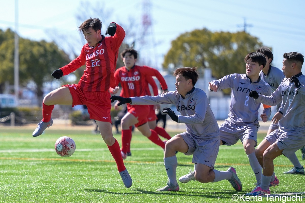 ボールをクリアして危機を逃れるDF前田航星(仙台大3年/鹿島アントラーズユース)MF山口春汰(仙台大2年/修徳高)の突破力が相手を苦しめた積極的にゴールを狙ったMF三沢大和(仙台大2年/鹿島アントラーズユース)FW伊藤俊輔(富士大2年/仙台育英学園高)はサイドから仕掛ける相手にボールを奪わせないDF中島大誠(富士大3年/神村学園高等部)DF梁現竣(八戸学院大3年/東北高)は最終ラインで相手の攻撃を潰したハイプレスでボール奪取を狙うFW菅野侑汰(八戸学院大3年/東北生活文化大学高)GK鮎澤太陽(仙台大3年/尚志高)はセットプレーでの強さを発揮した体を使い相手にボールを触らせないDF佐藤吏矩(富士大3年/日本大学山形高)MF鈴木大翔(仙台大3年/尚志高)の攻撃が好機を生み出した中盤から絶え間なく攻撃を仕掛け続けるMF則松隼人(富士大3年/神村学園高等部)MF小松朝陽(仙台大3年/鹿島アントラーズユース)がゴール前に効果的なボールを供給する相手の隙をついて二人抜きを試みるFW柴田龍牙(八戸学院大2年/旭川実業高)MF菊池遥大(八戸学院大2年/遠野高)は相手を圧倒するどこからでもゴールを狙うDF大坂悠斗(八戸学院大3年/札幌創成高)GK岡野輝平(八戸学院大3年/根室高)はロングフィードで攻撃に繋げるこぼれ球に素早く反応するMF佐々木悠磨(富士大2年/ベガルタ仙台ユース)FW武田陸来(仙台大3年/青森山田高)は仲間を鼓舞して士気を上げる東北選抜メンバー