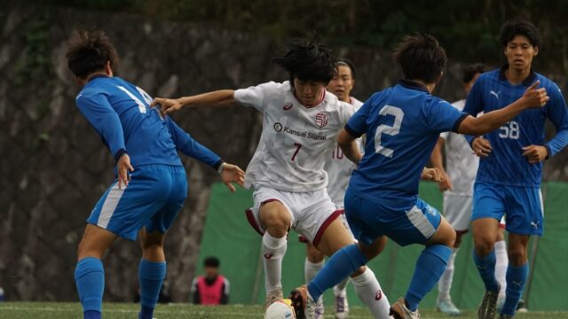 2025/10/18 関西学生リーグ2部後期第7節 近畿大vsびわこ成蹊スポーツ大 フォトギャラリー/昇格を争う2チームの戦いは、ロングスローから決勝点を奪った近畿大がクリーンシートで勝利